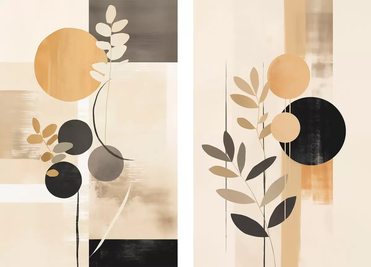 Wandbilder Abstraktionen mit Blättern und Kreisen m30133