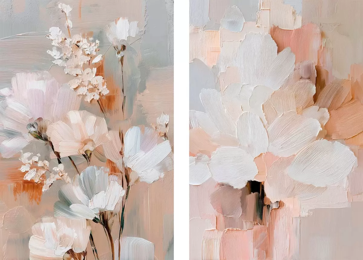 Wandbilder Abstrakte, leichte Blumen mit ausdrucksstarken Pinselstrichen im Stil der zeitgenössischen Kunst m30137