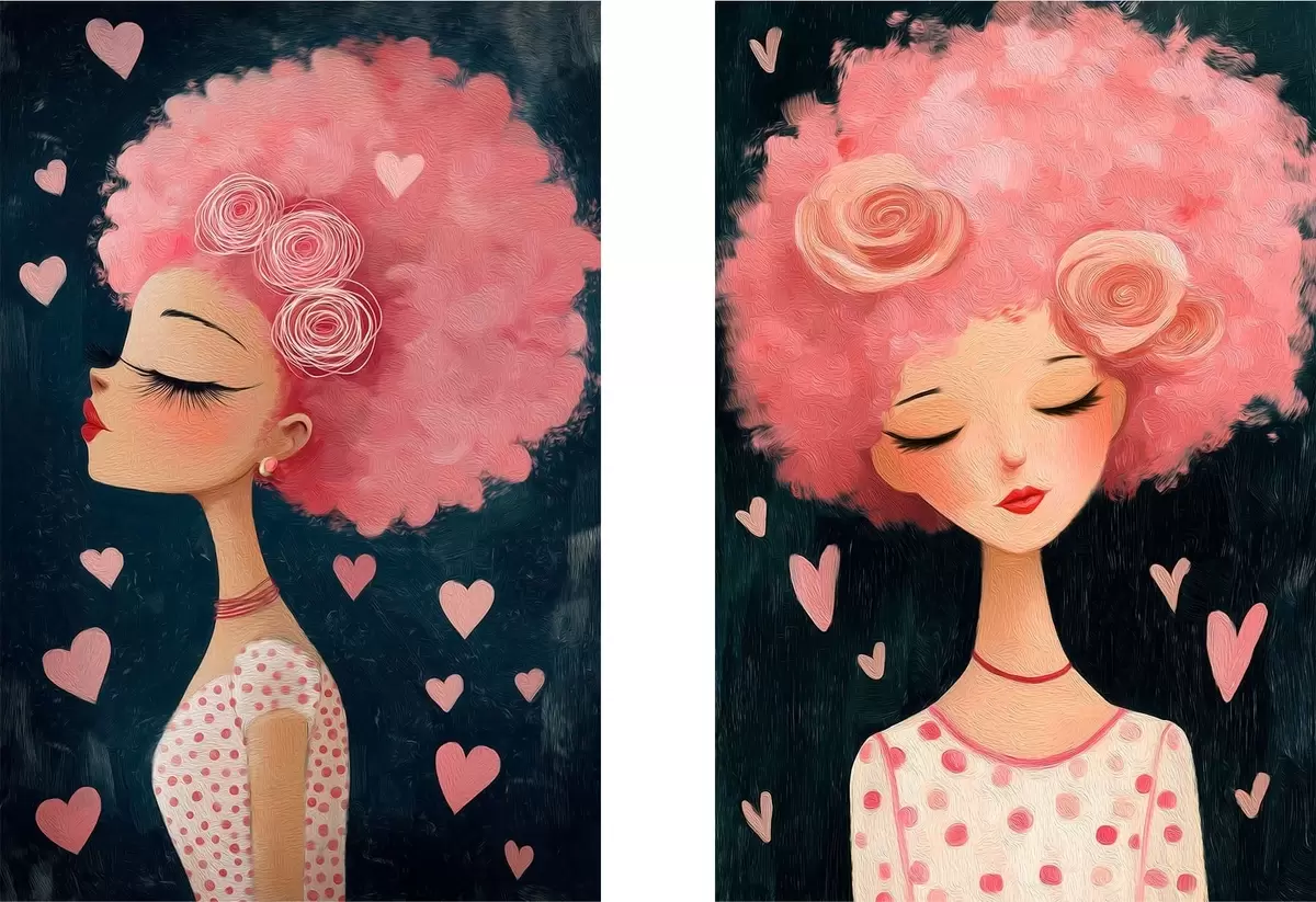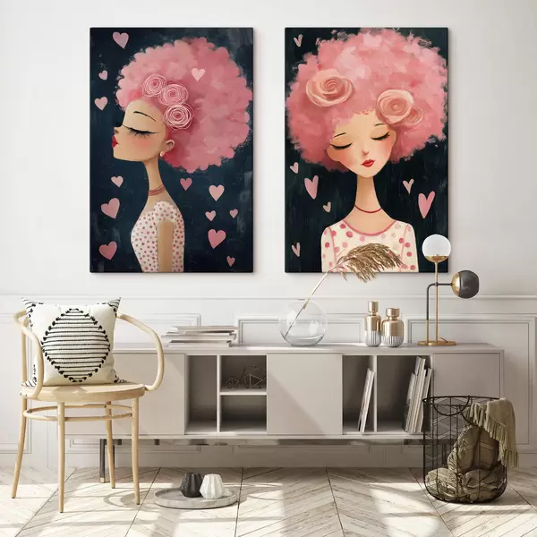 Wandbilder Mädchen mit rosa Haaren und Herzen Art. m30156