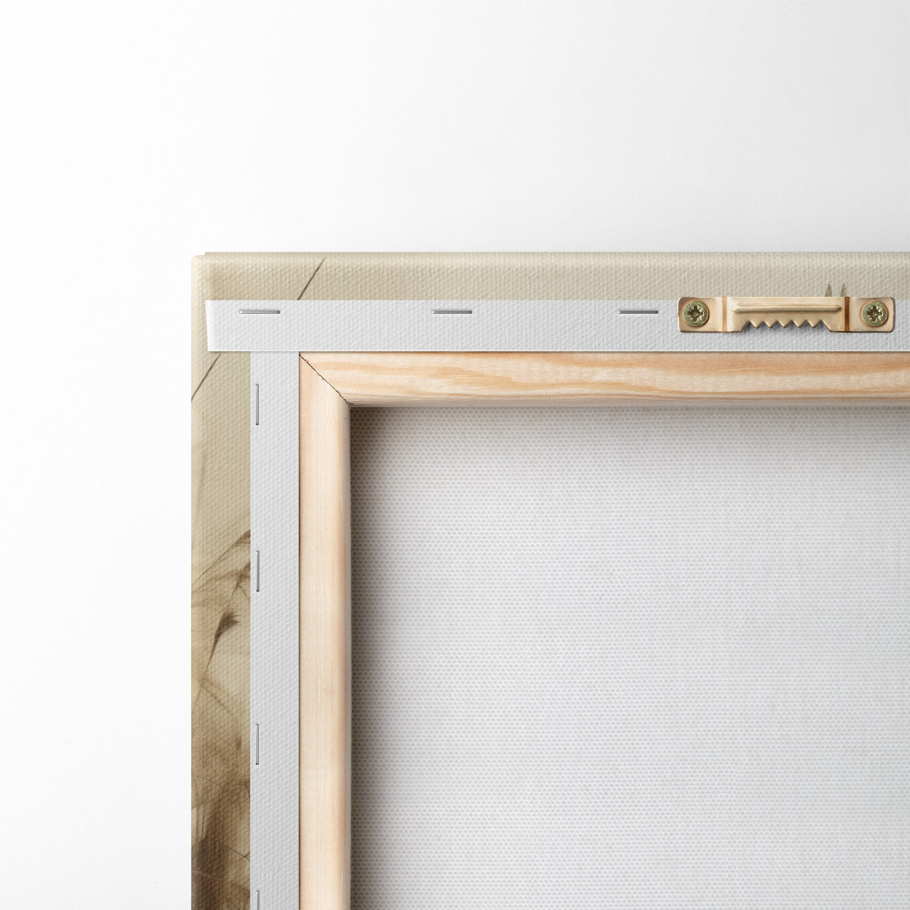 Um die Leinwand auf Keilrahmen zu spannen, ohne das Bild zu beschädigen, verwenden wir ein gespiegeltes Bild.