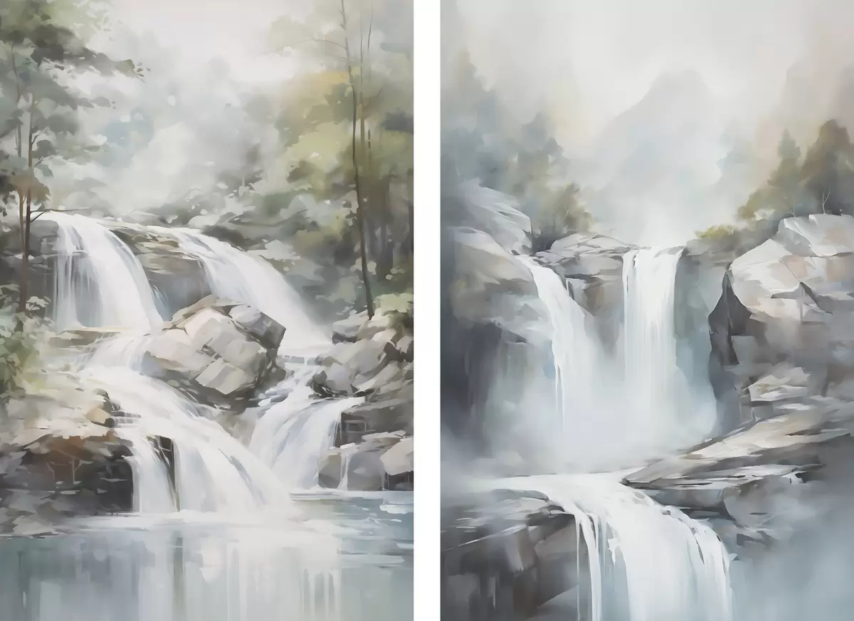 Wandbilder Nachbildung eines Wasserfalls in einem Gemälde Art. m30212