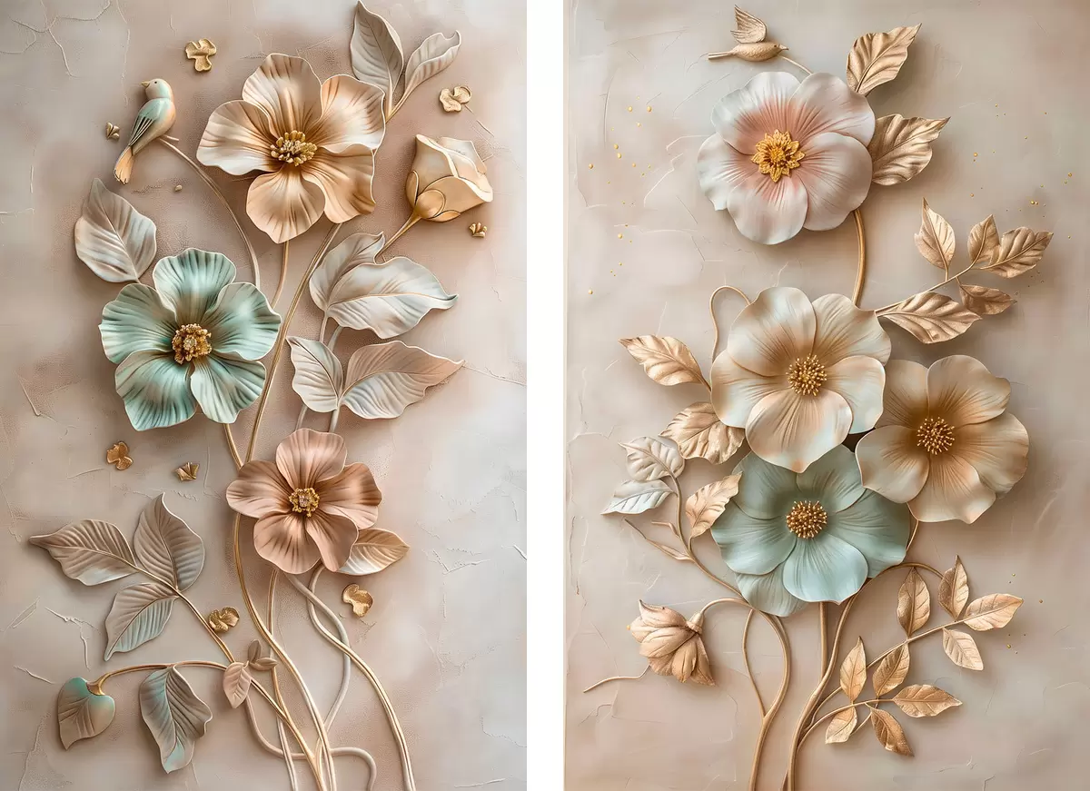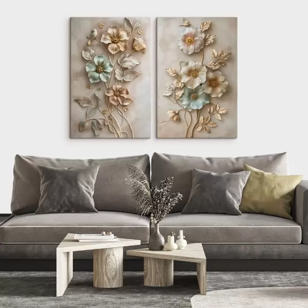 Wandbilder ein zartes, dekoratives Arrangement aus Blumen und Blattwerk Art. m30260
