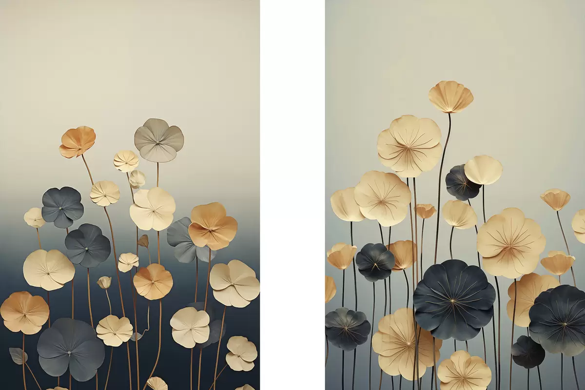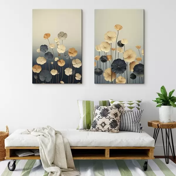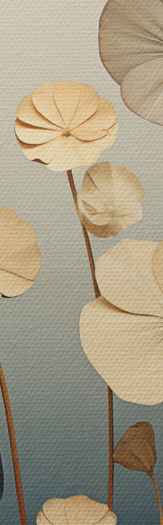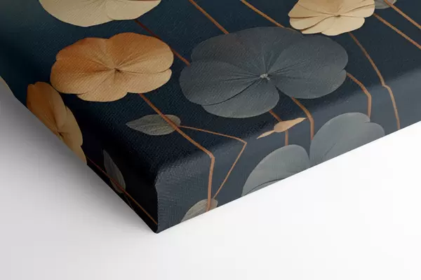 Wandbilder Seerosenblätter vor einem gedämpften Hintergrund aus Beige und Dunkelblau m30317