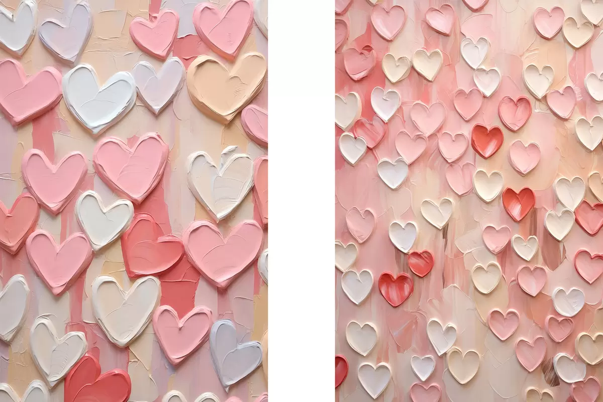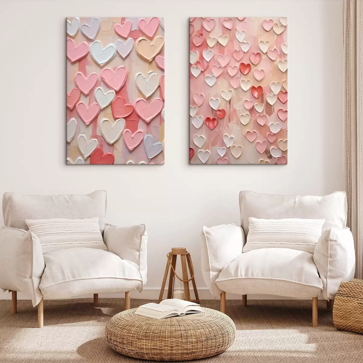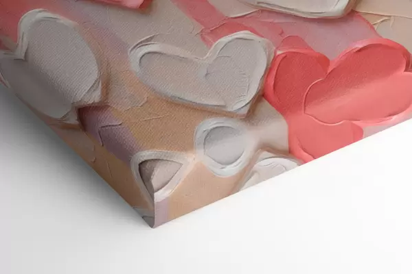 Wandbilder Herzen in verschiedenen Pfirsich- und Rosatönen in einem strukturierten, gemalten Stil m30326