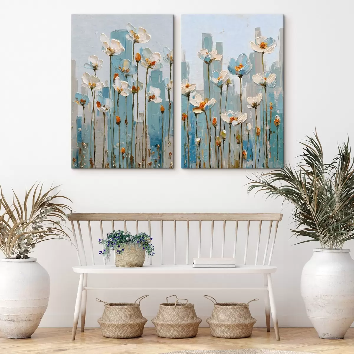 Wandbilder Blumen vor einer städtischen Kulisse, im Stil eines Ölgemäldes Art. m30333