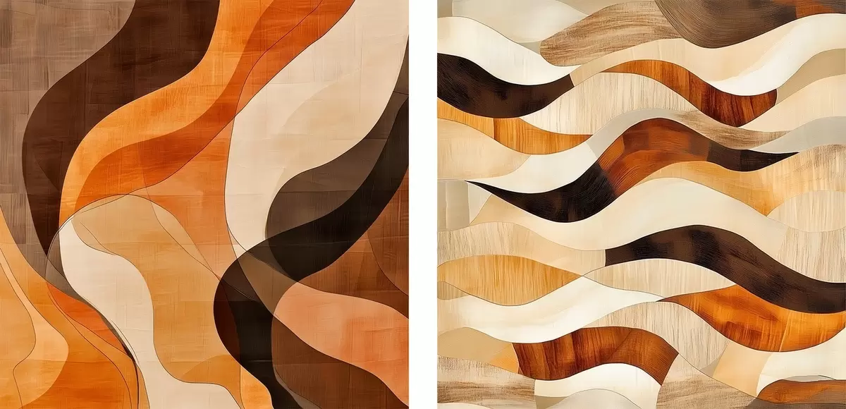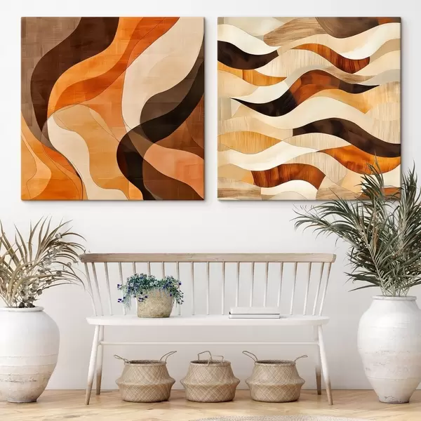 Wandbilder Abstrakte Komposition mit wellenförmigen Linien in warmen Braun- und Beigetönen m30352