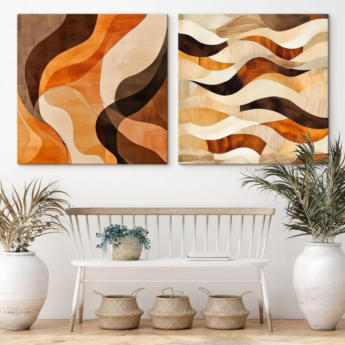 Wandbilder Abstrakte Komposition mit wellenförmigen Linien in warmen Braun- und Beigetönen Art. m30352