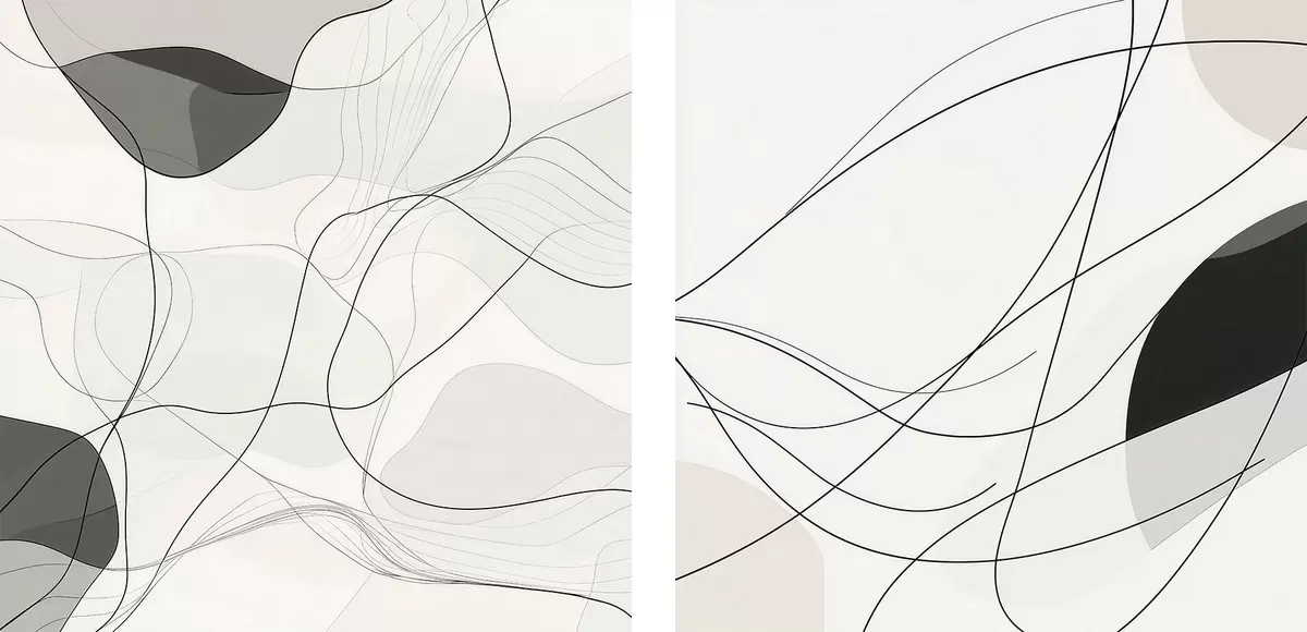 Wandbilder Grafische Ästhetik: abstrakte Kurven auf hellem Hintergrund im minimalistischen Stil Art. m30353