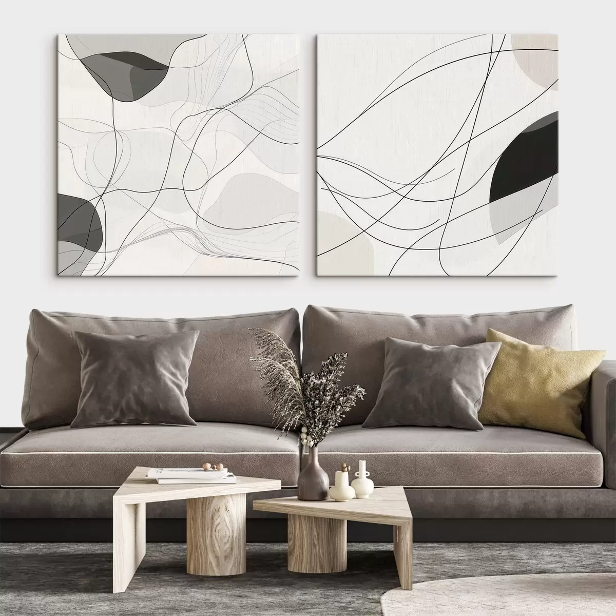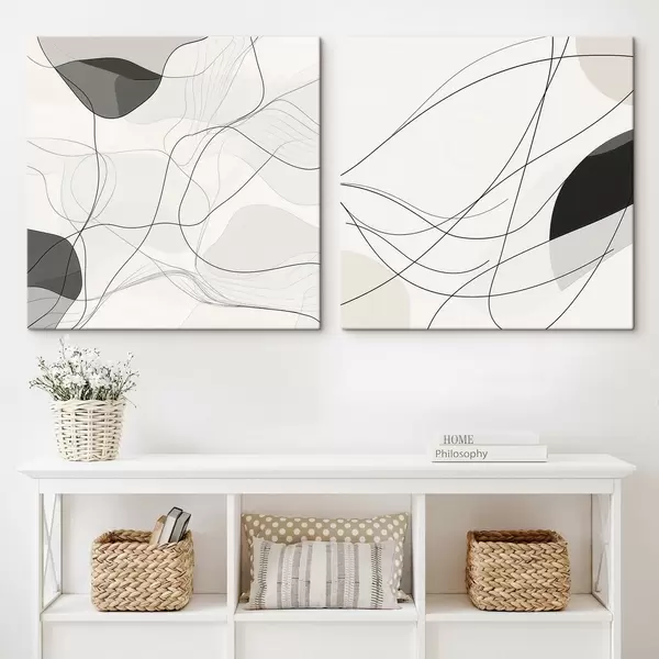 Wandbilder Grafische Ästhetik: abstrakte Kurven auf hellem Hintergrund im minimalistischen Stil m30353