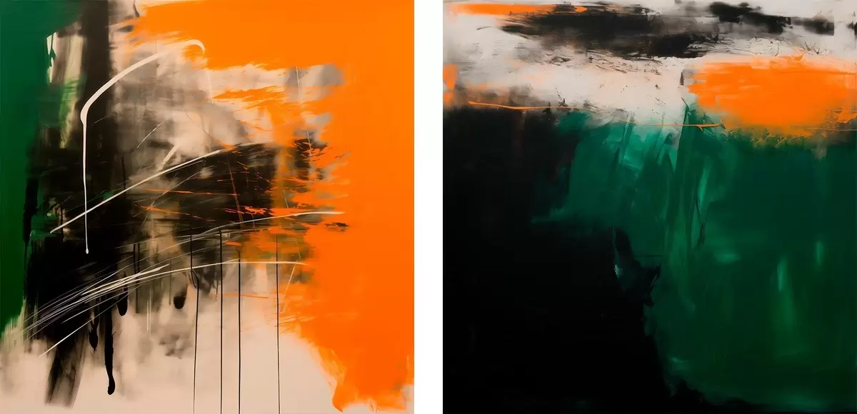 Wandbilder Komposition mit ausdrucksstarken Pinselstrichen und tiefen, dunklen Farbtönen im minimalistischen Stil m30359