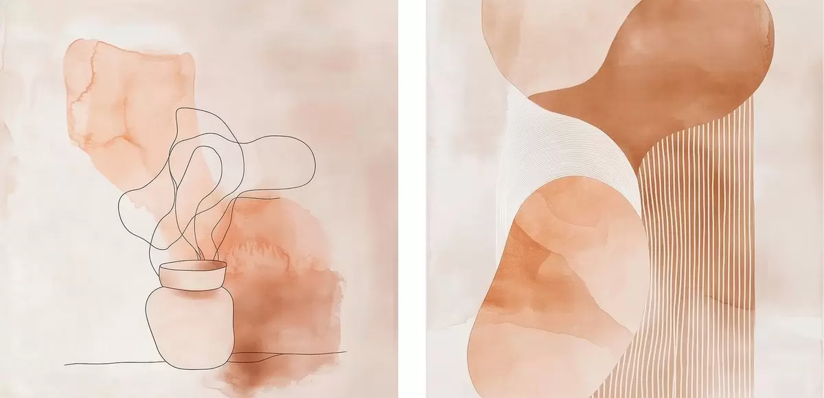 Wandbilder Abstrakte Formen in einer Beige-Pfirsich-Farbpalette mit linearen Akzenten im minimalistischen Stil m30361