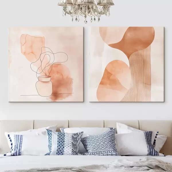 Wandbilder Abstrakte Formen in einer Beige-Pfirsich-Farbpalette mit linearen Akzenten im minimalistischen Stil Art. m30361