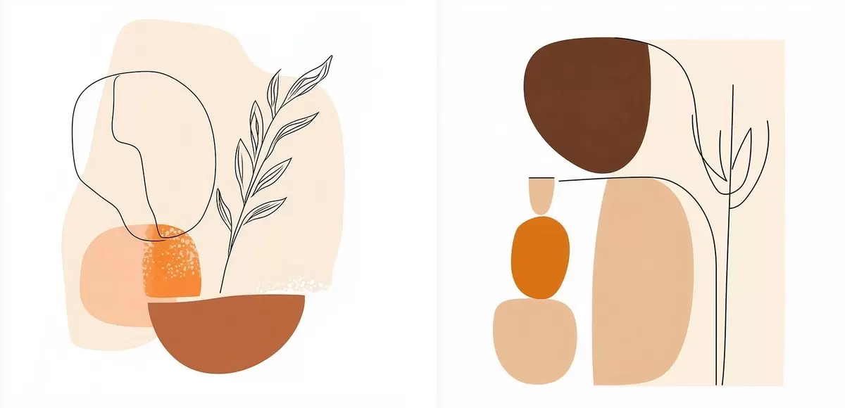 Wandbilder Abstrakte Blumen in einer warmen Beige-Korallen-Farbpalette: Illustration im minimalistischen Stil Art. m30362