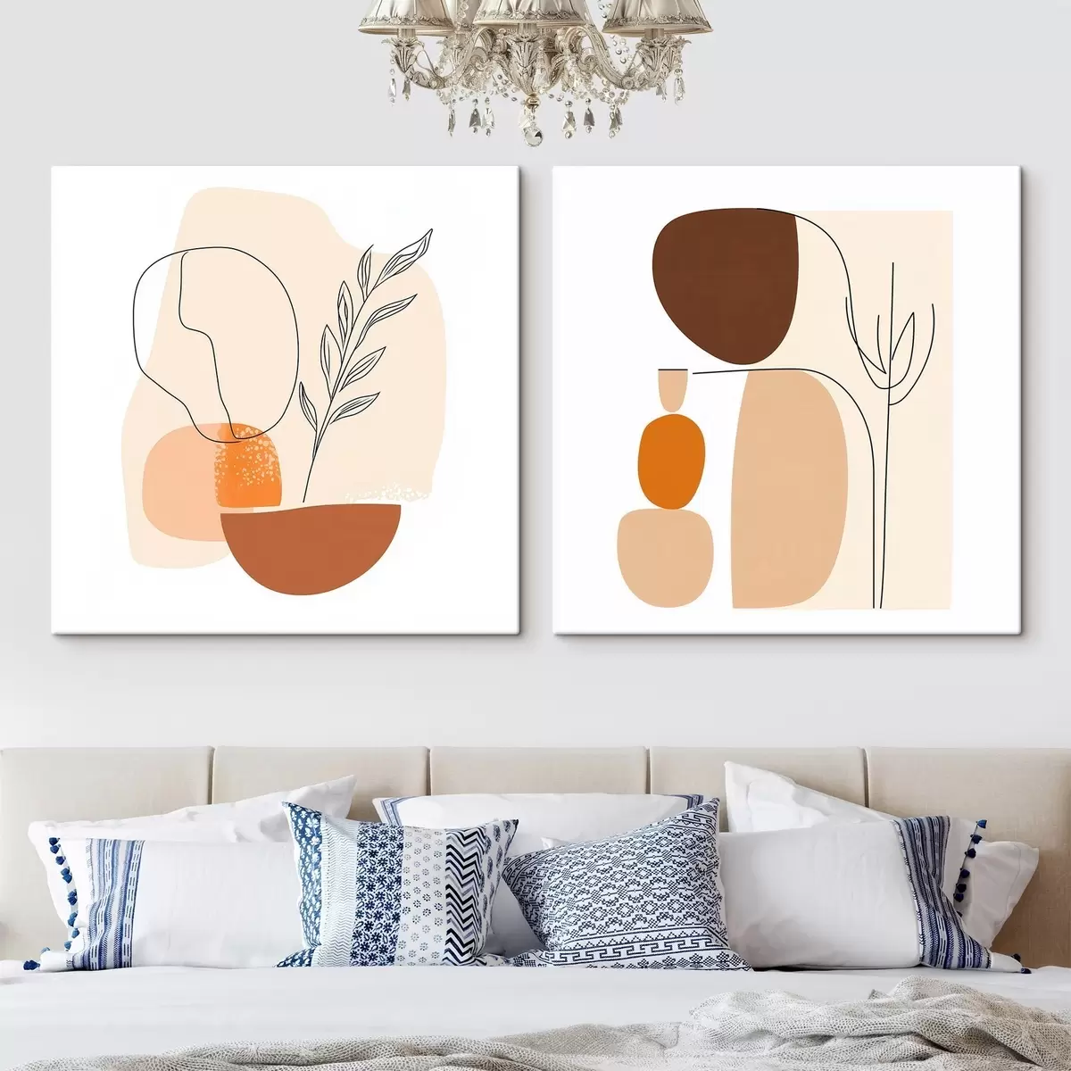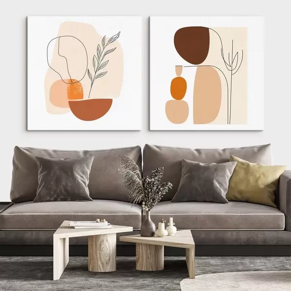 Wandbilder Abstrakte Blumen in einer warmen Beige-Korallen-Farbpalette: Illustration im minimalistischen Stil m30362
