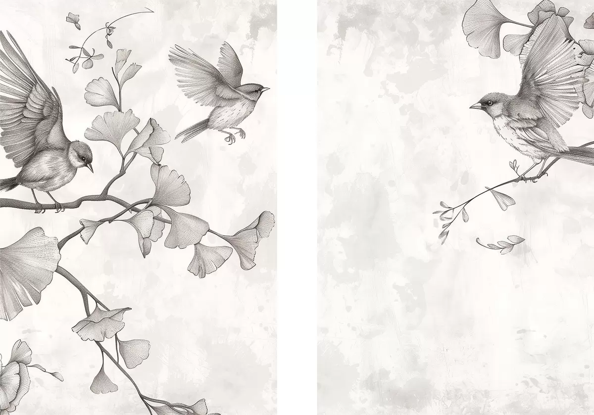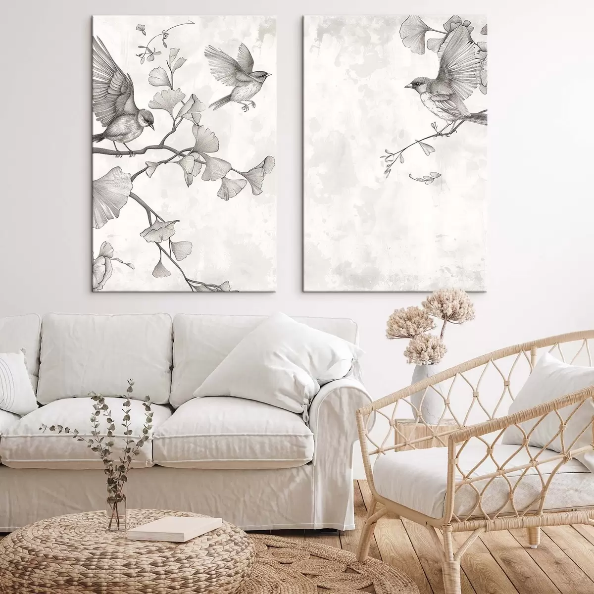 Wandbilder Vögel auf Ginkgozweigen m30380