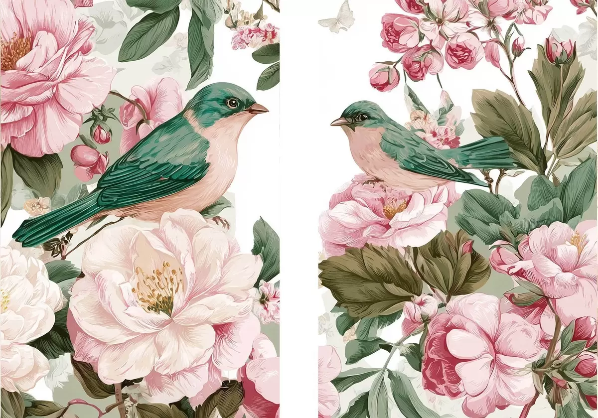 Wandbilder Vögel auf zartrosa Blüten m30386