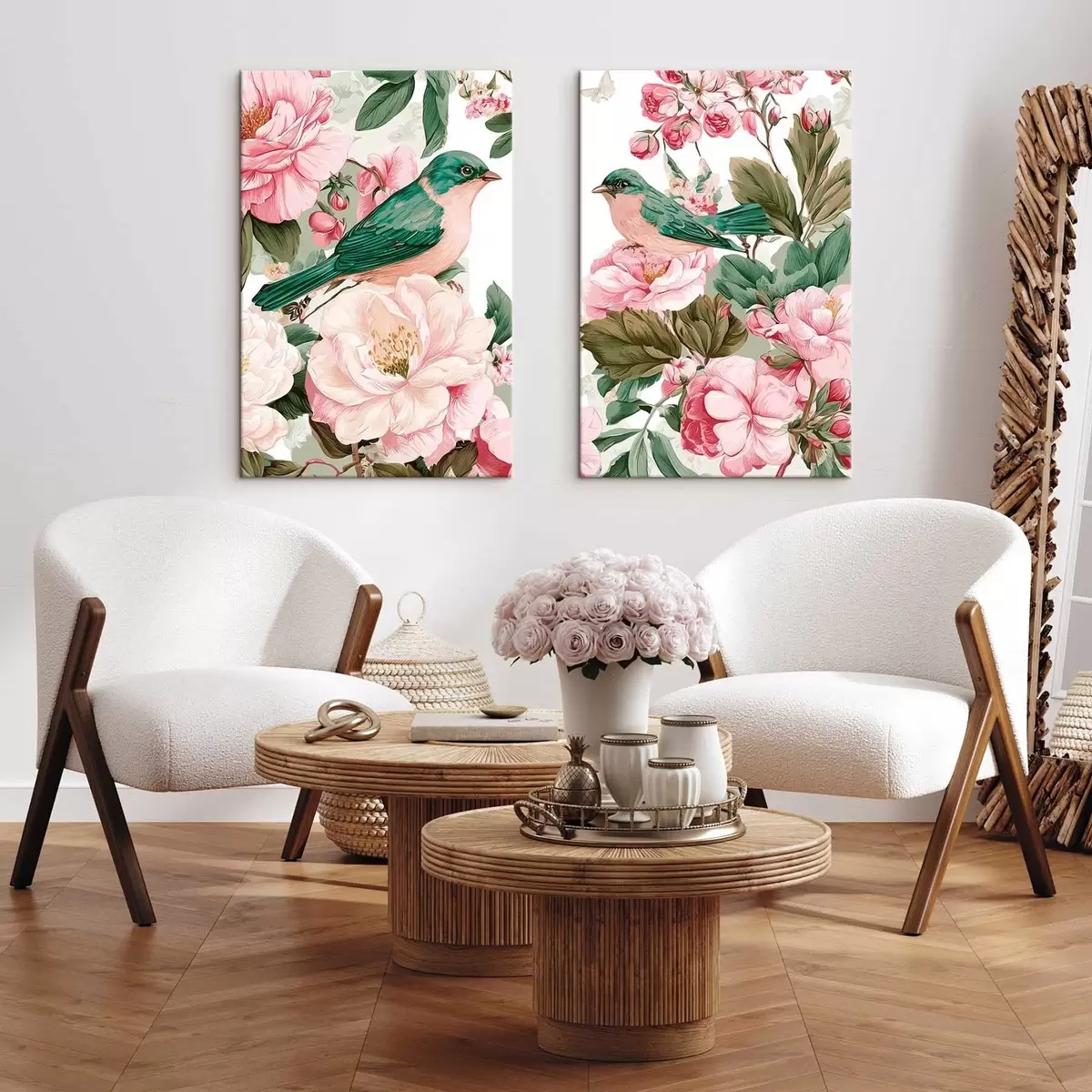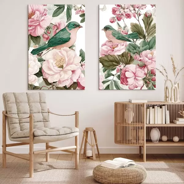 Wandbilder Vögel auf zartrosa Blüten Art. m30386