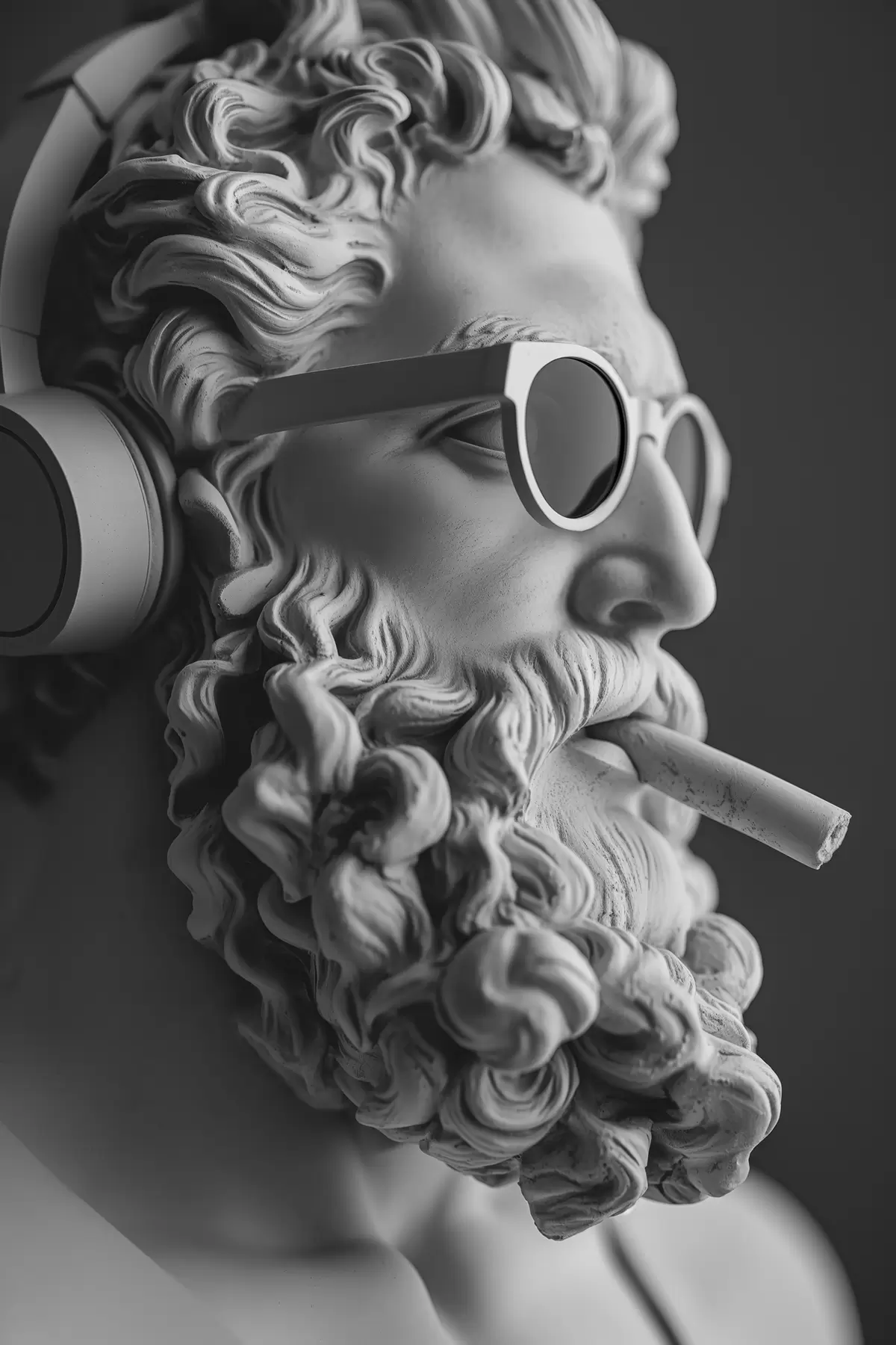 Wandbilder Schwarz-weiße antike griechische Skulptur des Zeus im modernen Stil Art. s26122