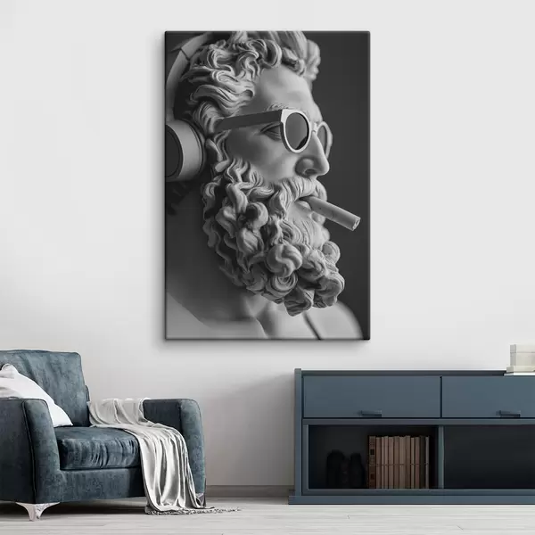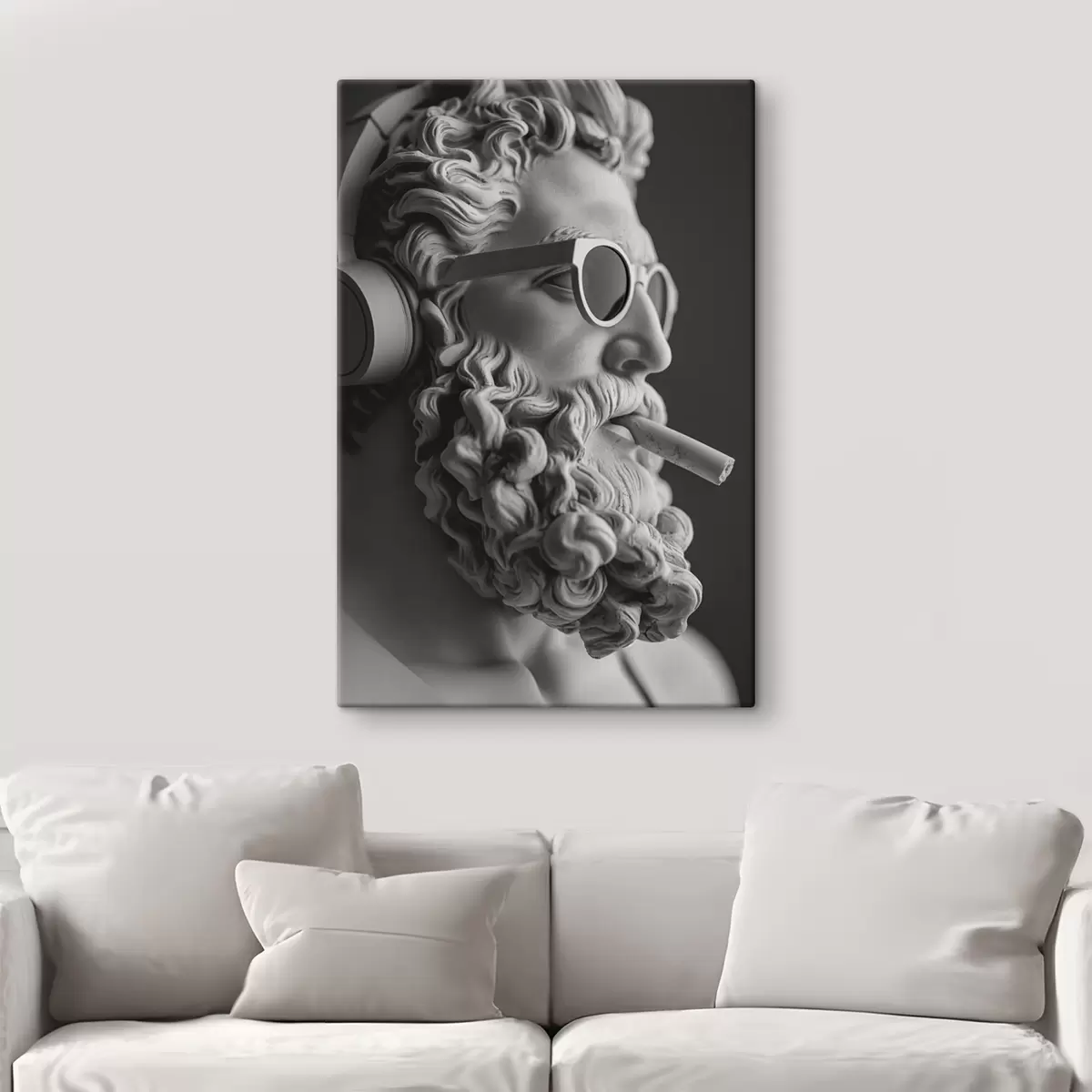 Wandbilder Schwarz-weiße antike griechische Skulptur des Zeus im modernen Stil s26122