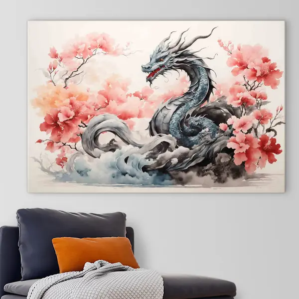 Wandbilder Ein Drache aus der chinesischen Mythologie in Aquarell Art. s36239