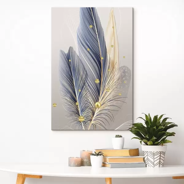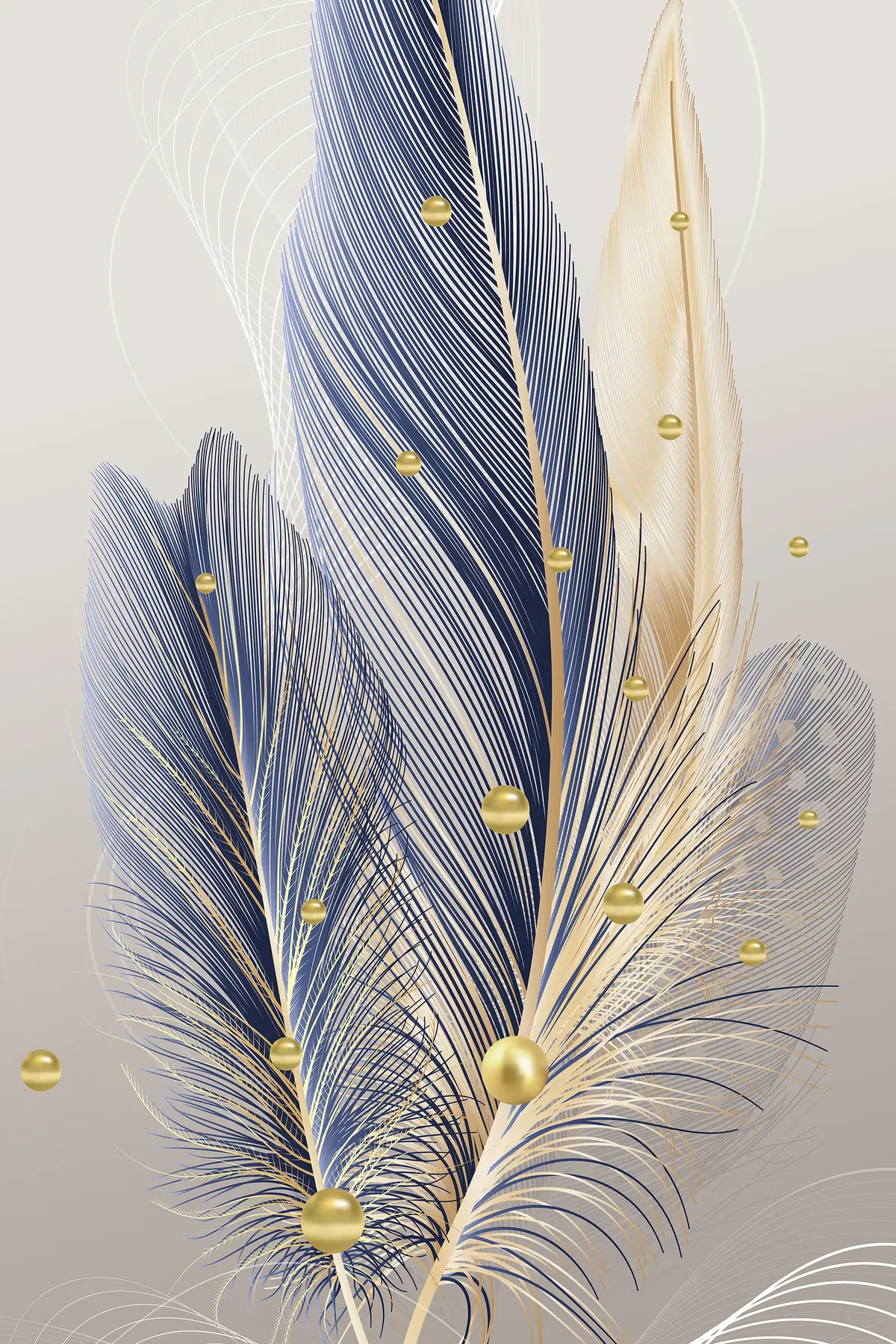 Wandbilder Blaue Federn mit Perlen Art. s36325