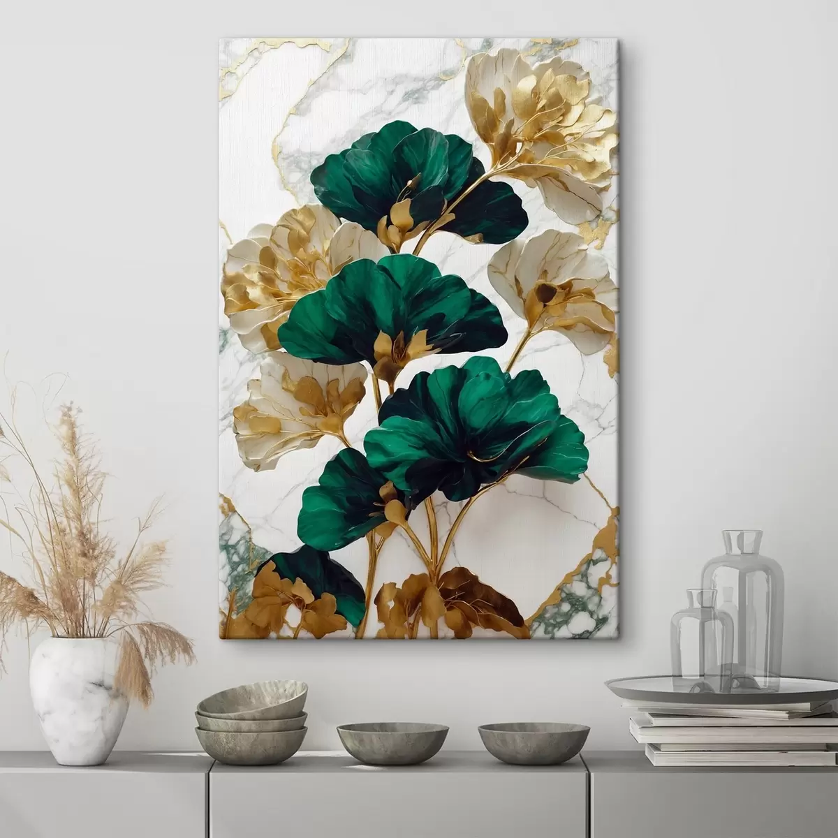 Wandbilder Elegante Blätter auf Marmorgrund s36646
