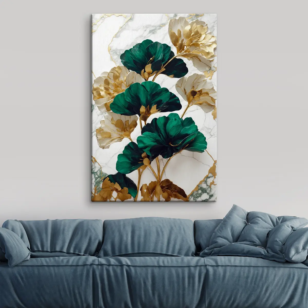 Wandbilder Elegante Blätter auf Marmorgrund s36646