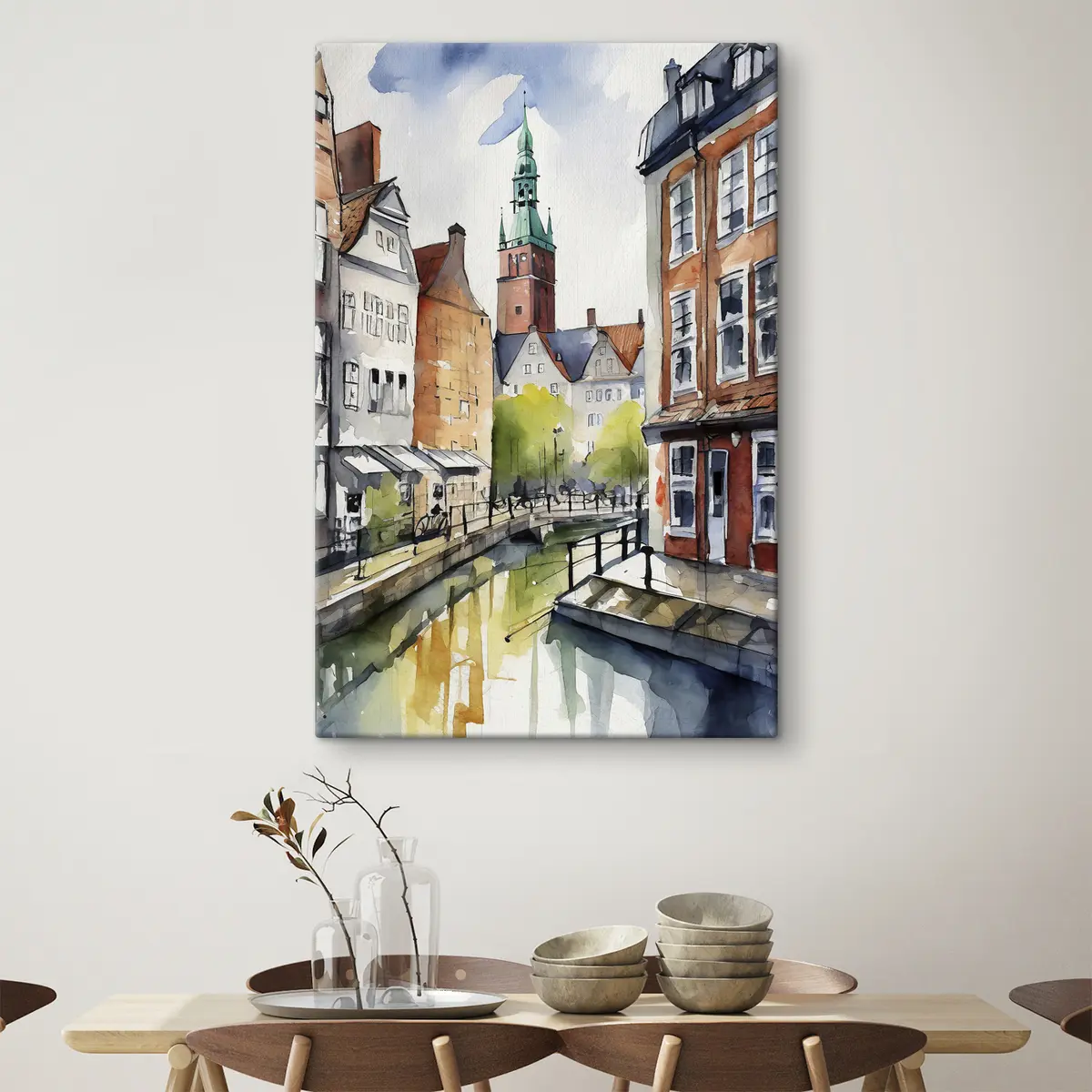 Wandbilder Bezaubernde Kanalszene in einer pulsierenden Stadt Art. s36682
