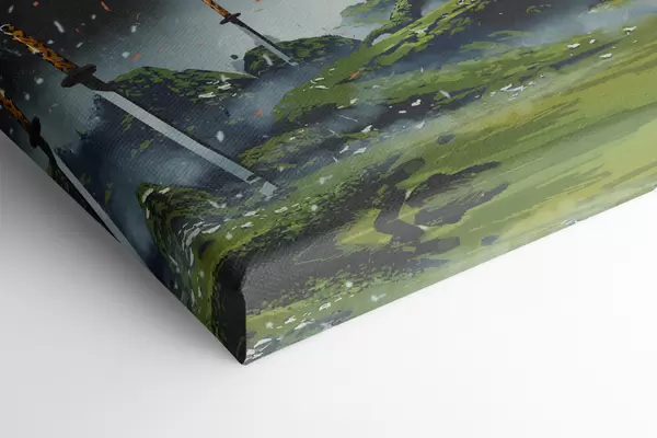 Drei Materialtypen stehen zur Verfügung: Economic Canvas - ein dichtes und haltbares Material für den Digitaldruck, identisch mit Malerleinwand, wasserfeste Oberfläche, realistische Wiedergabe von Details, mittelkörniges Material. Premium Canvas - die Textur ähnelt der einer Malerleinwand (verwobene kleine Fäden). Weiche, detaillierte Wiedergabe des Bildes auf einer matten Oberfläche. Eco-Premium - hochwertiges Gewebe aus 100% Baumwolle. Dank der natürlichen Baumwollfasern ist das Material langlebig und verschleißfest. Hervorragende Farbwiedergabe und Detailtreue.