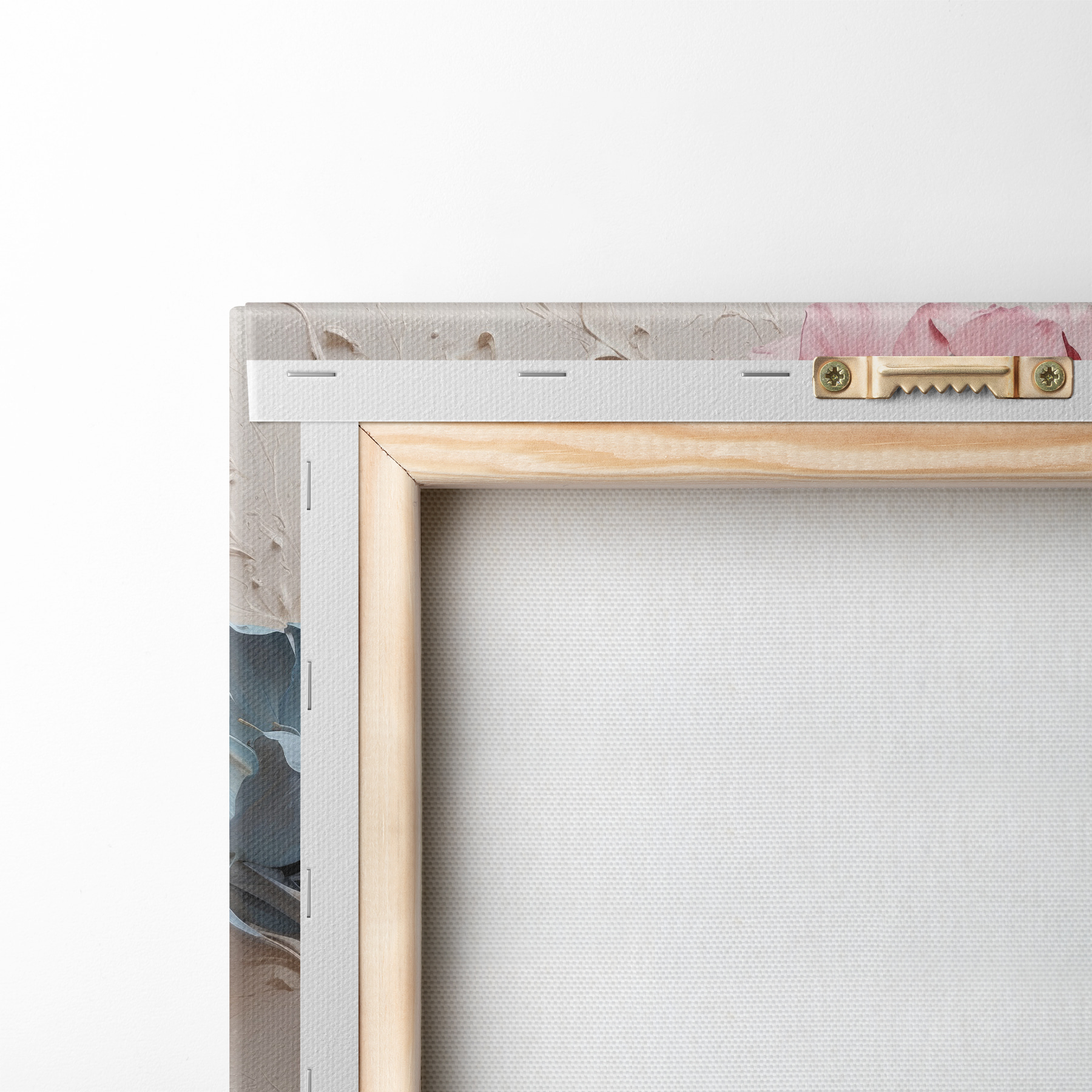 Um die Leinwand auf Keilrahmen zu spannen, ohne das Bild zu beschädigen, verwenden wir ein gespiegeltes Bild.