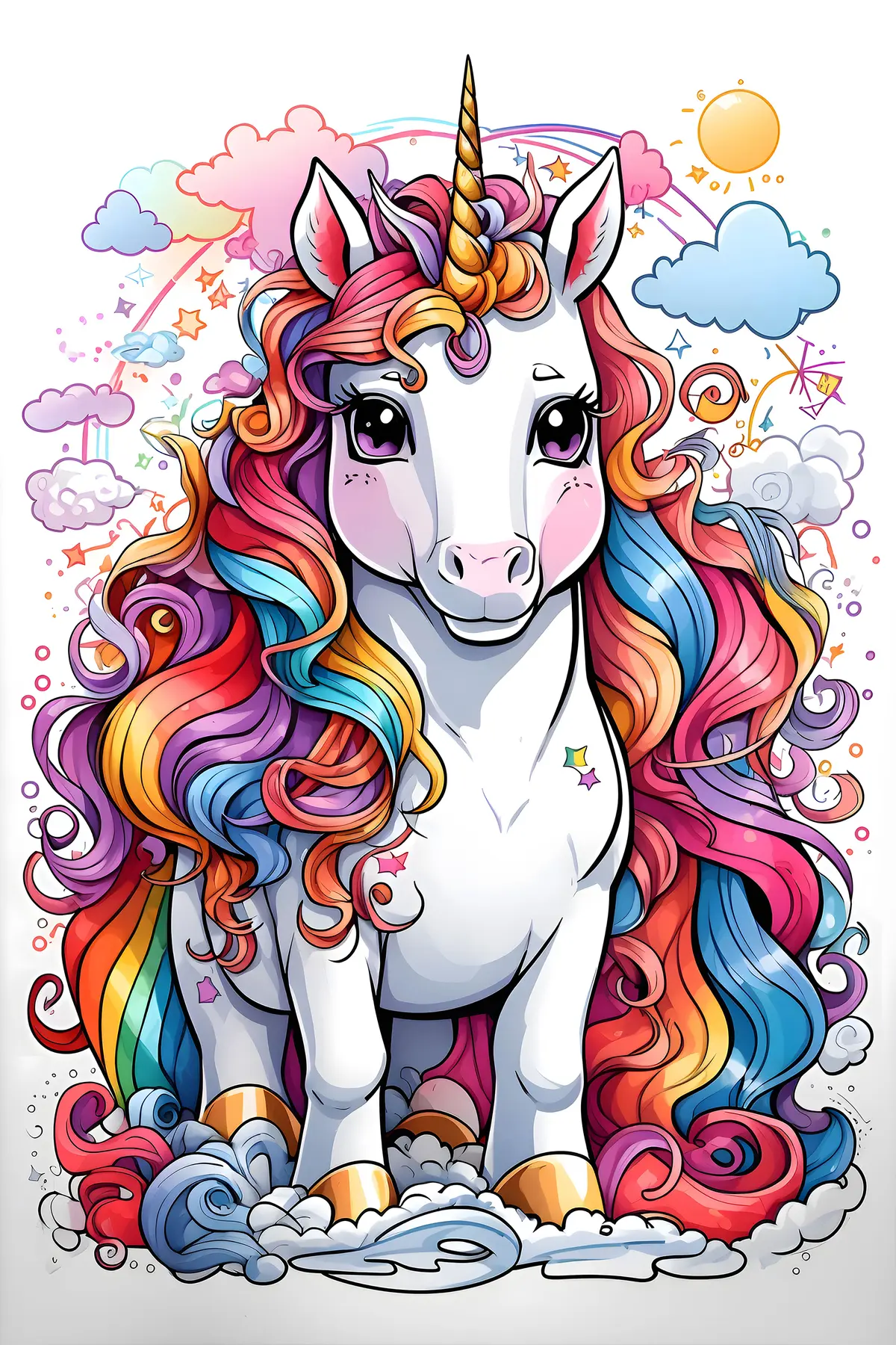 Wandbilder Magisches Einhorn mit leuchtender Regenbogenmähne s37766