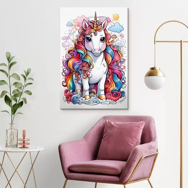 Wandbilder Magisches Einhorn mit leuchtender Regenbogenmähne Art. s37766