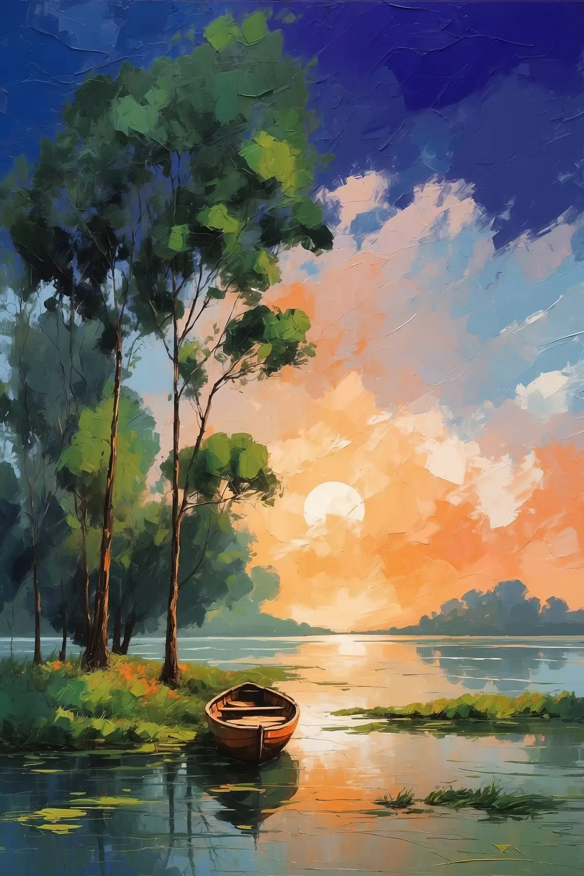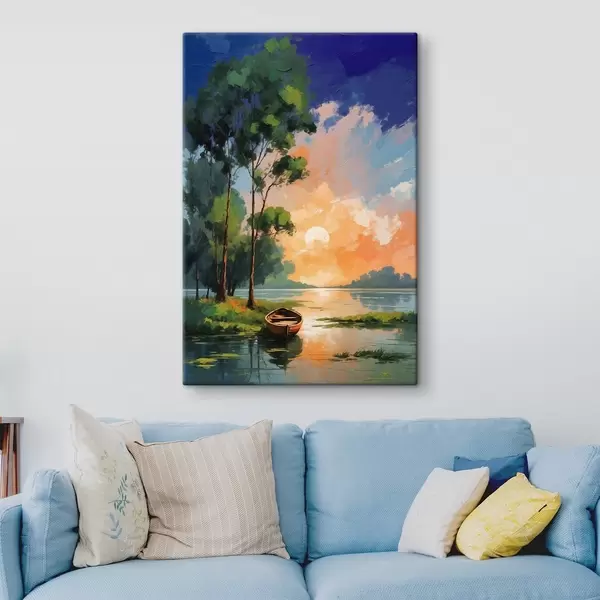 Wandbilder Gemälde eines Bootes auf einem See Art. s37801