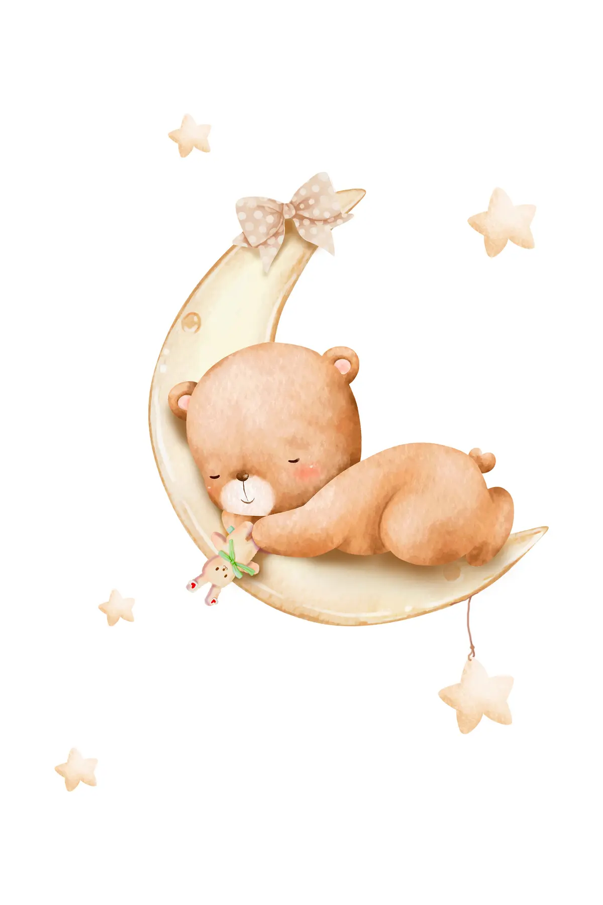 Wandbilder Schläfriger Bär auf einem Halbmond s37917