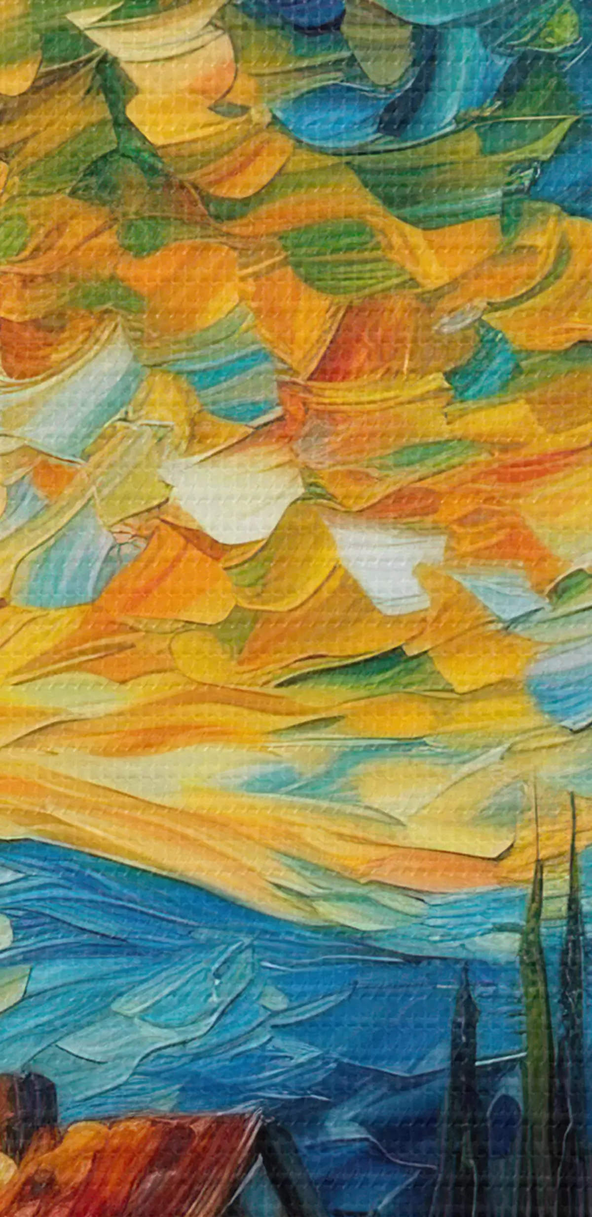 Drei Materialtypen stehen zur Verfügung: Economic Canvas - ein dichtes und haltbares Material für den Digitaldruck, identisch mit Malerleinwand, wasserfeste Oberfläche, realistische Wiedergabe von Details, mittelkörniges Material. Premium Canvas - die Textur ähnelt der einer Malerleinwand (verwobene kleine Fäden). Weiche, detaillierte Wiedergabe des Bildes auf einer matten Oberfläche. Eco-Premium - hochwertiges Gewebe aus 100% Baumwolle. Dank der natürlichen Baumwollfasern ist das Material langlebig und verschleißfest. Hervorragende Farbwiedergabe und Detailtreue.