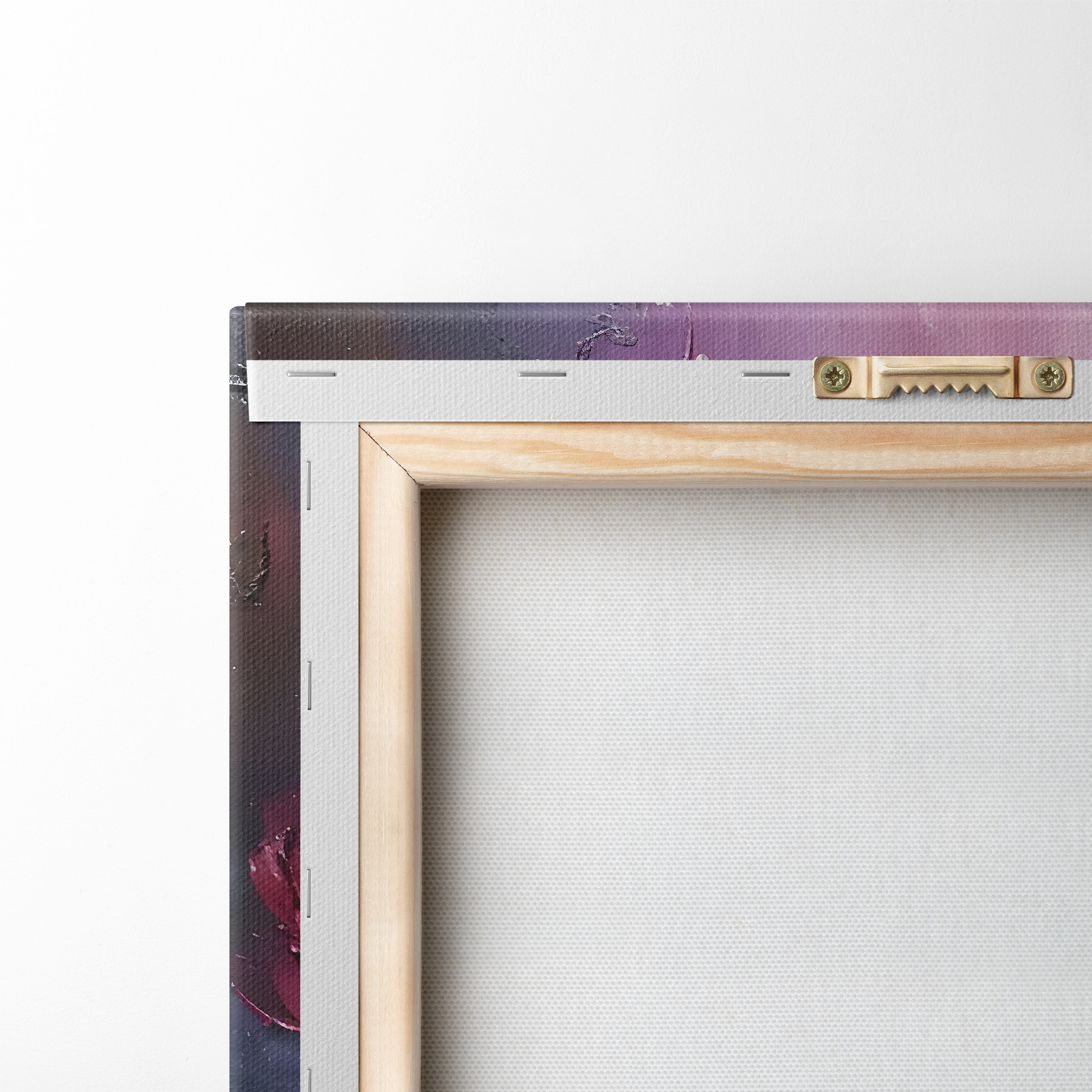 Um die Leinwand auf Keilrahmen zu spannen, ohne das Bild zu beschädigen, verwenden wir ein gespiegeltes Bild.