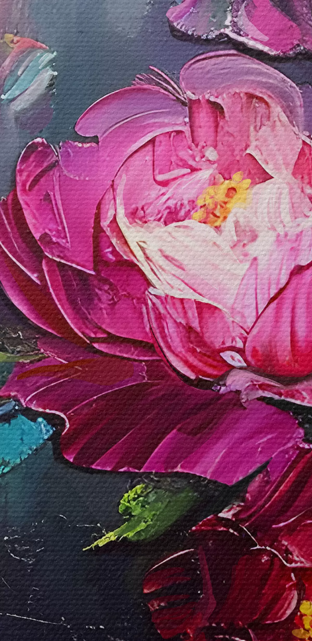 Das Gemälde kann sofort nach Erhalt aufgehängt werden. Das Gemälde wird auf einen 2 cm breiten Holzkeilrahmen aufgespannt.