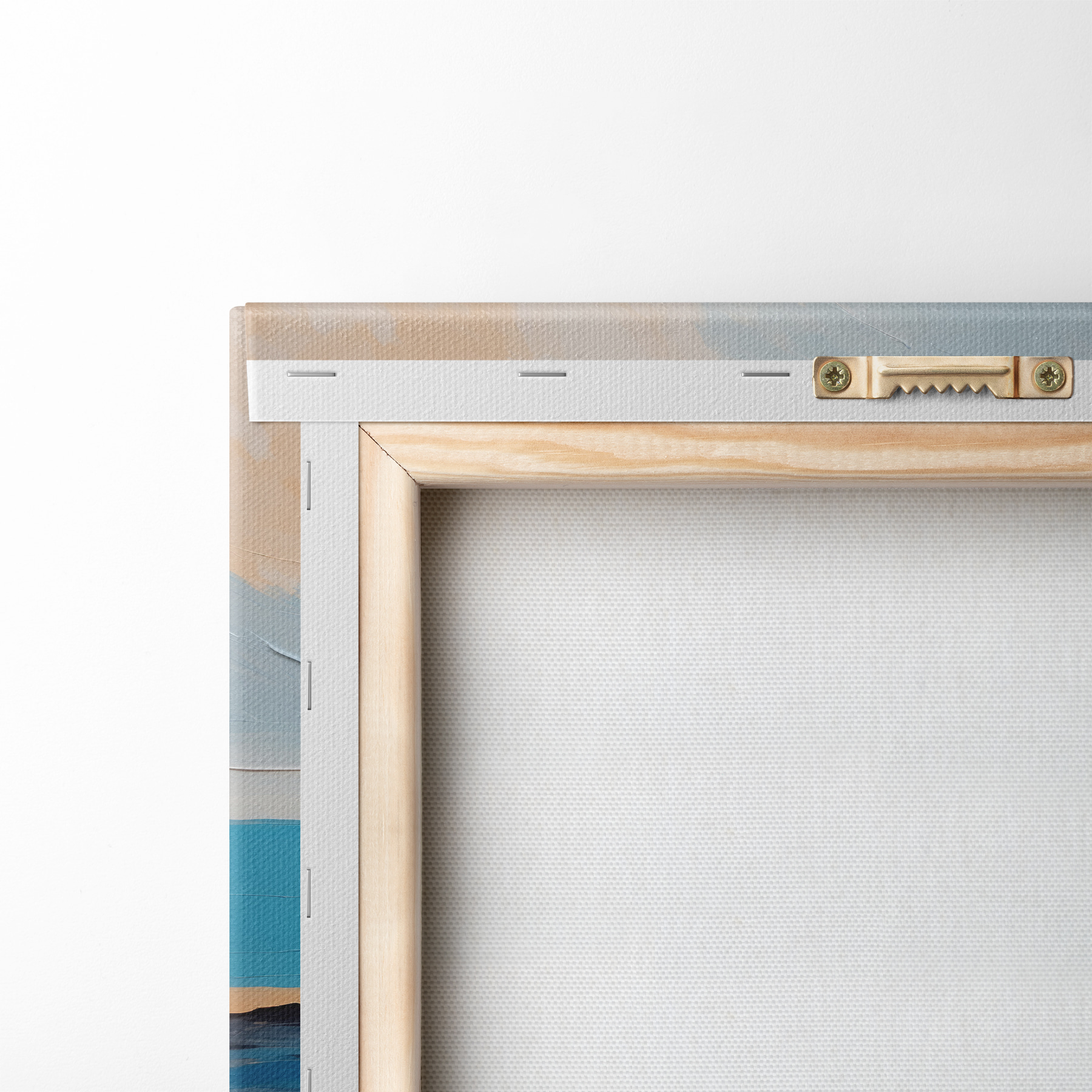 Sie können das Bild an Schrauben aufhängen. Dazu legen wir unseren Bildern Halterungen bei, mit denen Sie das Bild bequem aufhängen können.