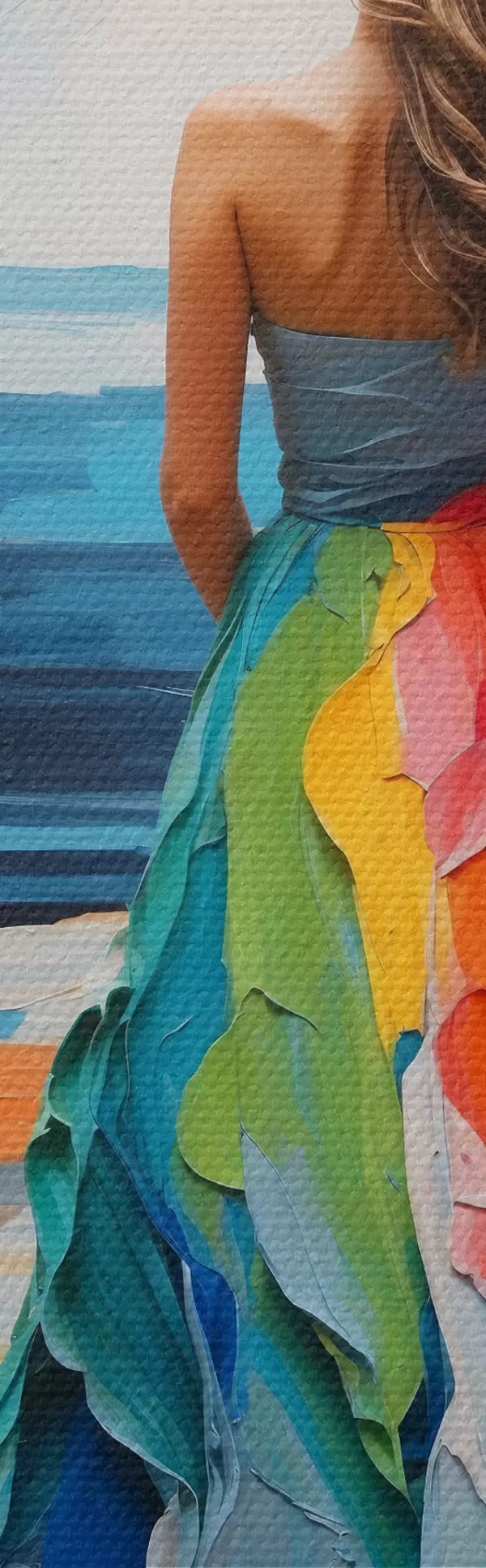 Drei Materialtypen stehen zur Verfügung: Economic Canvas - ein dichtes und haltbares Material für den Digitaldruck, identisch mit Malerleinwand, wasserfeste Oberfläche, realistische Wiedergabe von Details, mittelkörniges Material. Premium Canvas - die Textur ähnelt der einer Malerleinwand (verwobene kleine Fäden). Weiche, detaillierte Wiedergabe des Bildes auf einer matten Oberfläche. Eco-Premium - hochwertiges Gewebe aus 100% Baumwolle. Dank der natürlichen Baumwollfasern ist das Material langlebig und verschleißfest. Hervorragende Farbwiedergabe und Detailtreue.