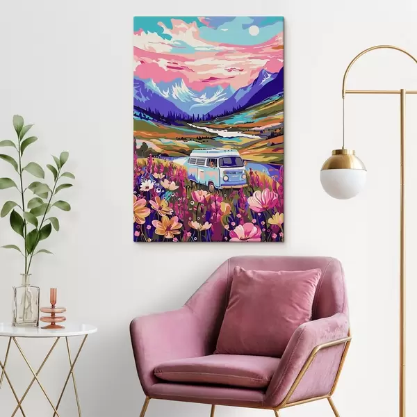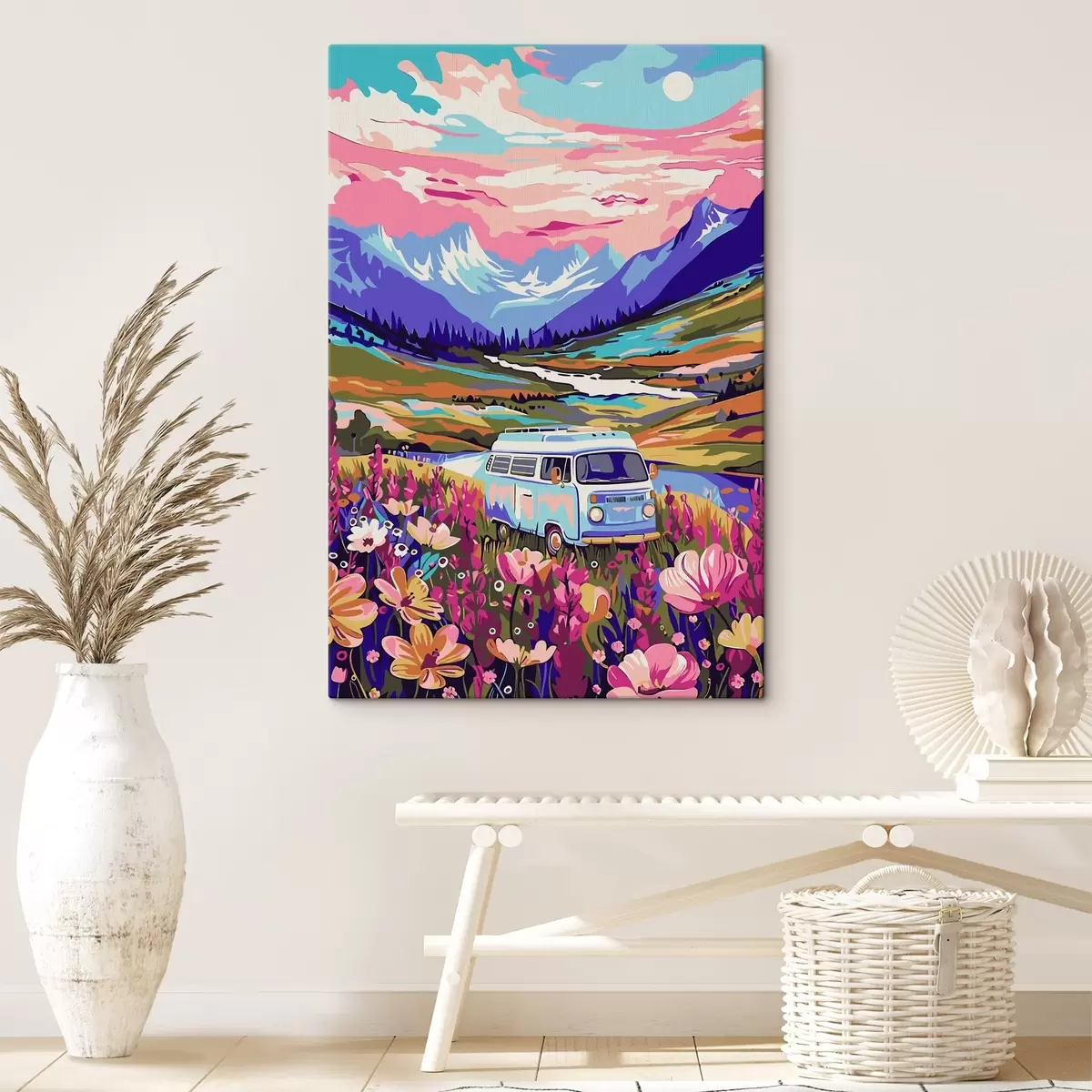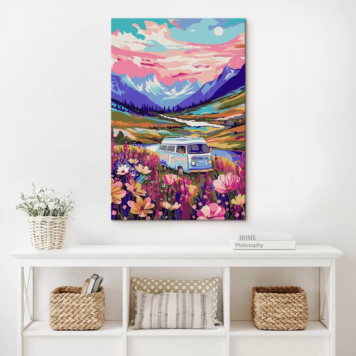 Wandbilder Ein Lieferwagen fährt durch ein Blumenfeld Art. s38260