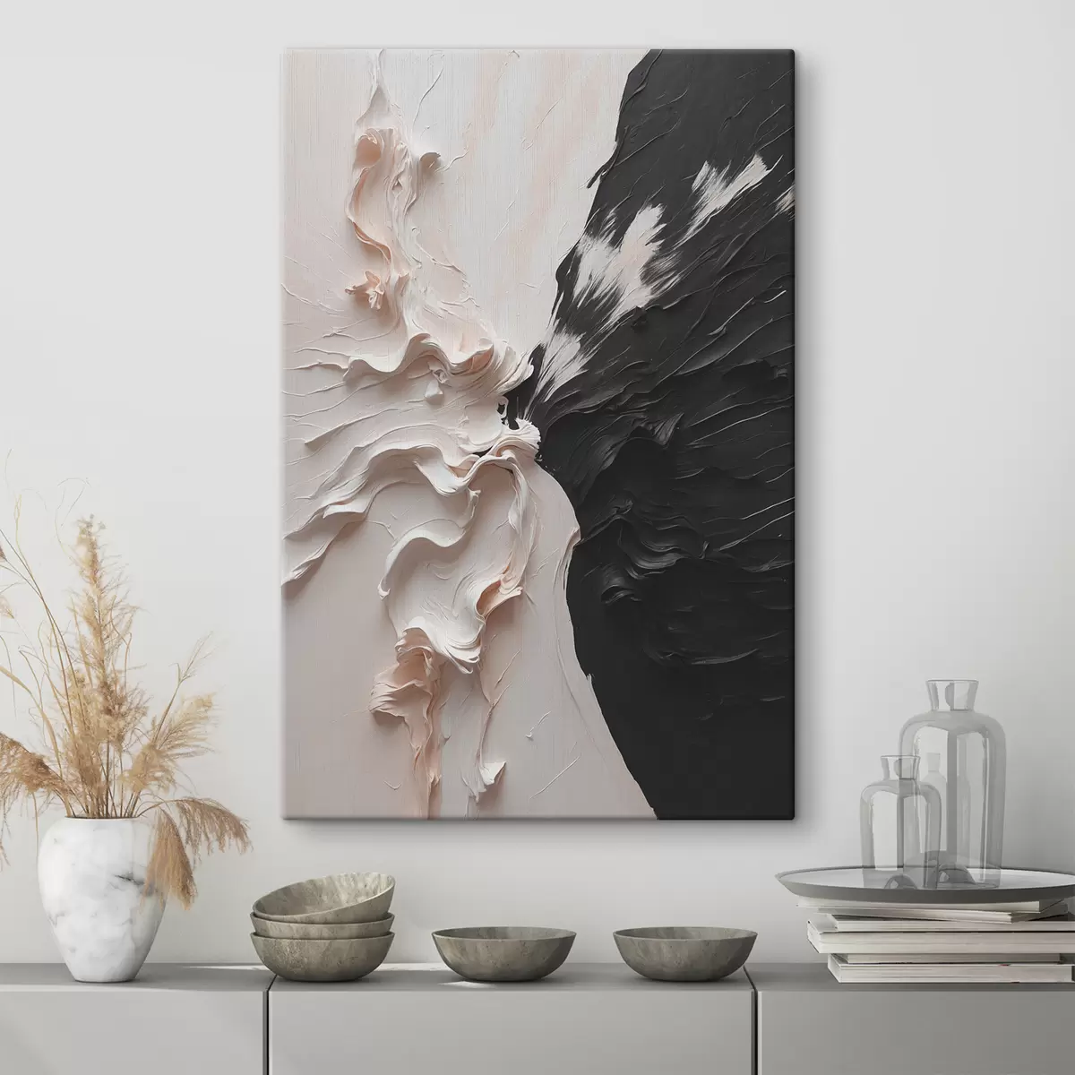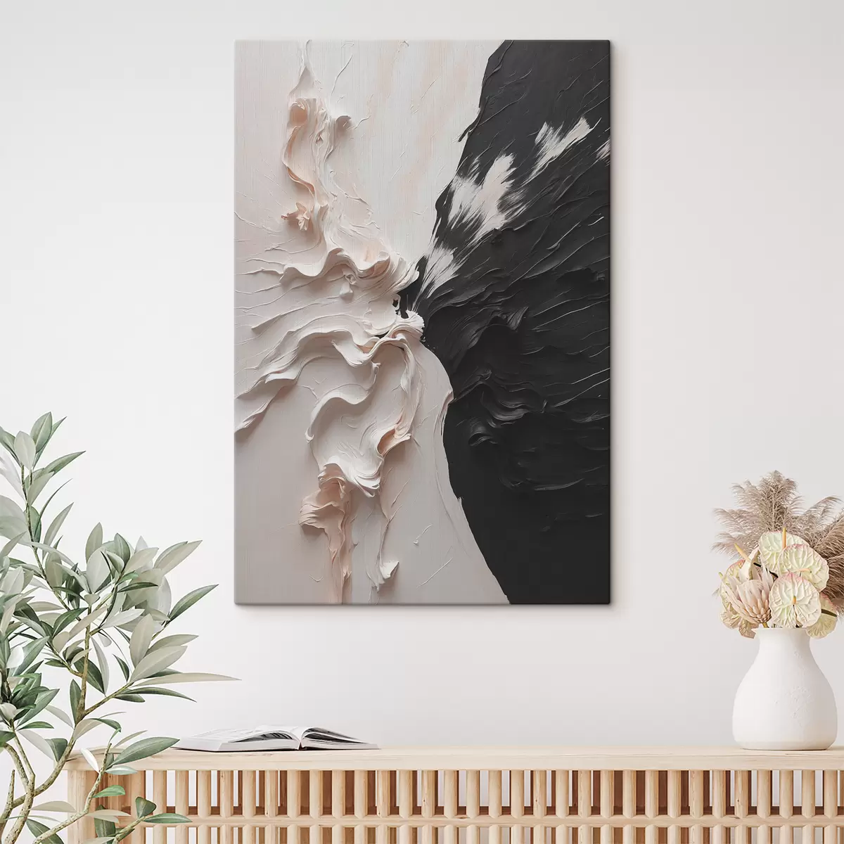 Wandbilder Abstraktes Ölgemälde in Weiß- und Schwarztönen s38300