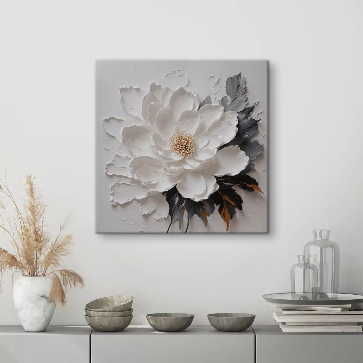 Wandbilder Weiße Blume auf Ölhintergrund Art. s38304