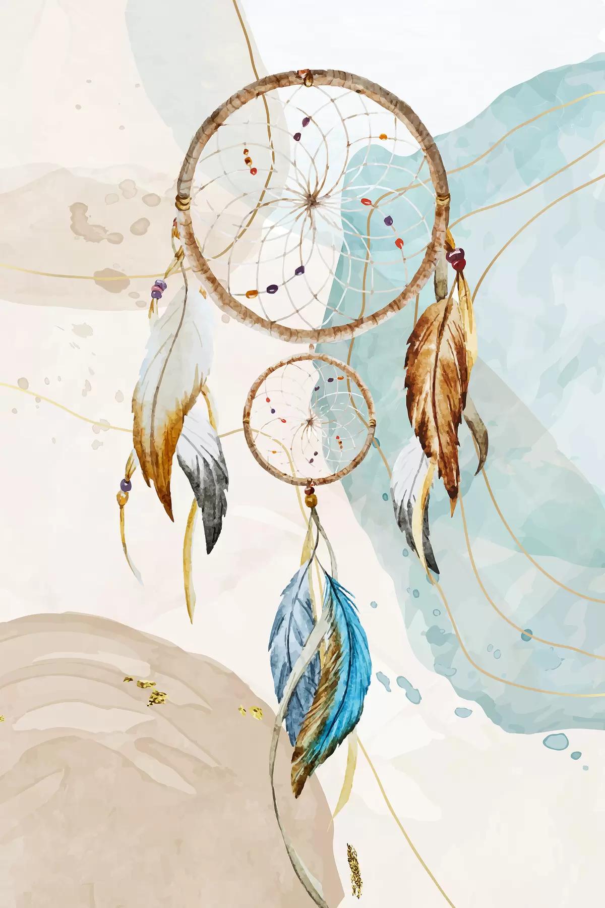 Wandbilder Aquarell, Traumfänger, Federn, Pastell s38330