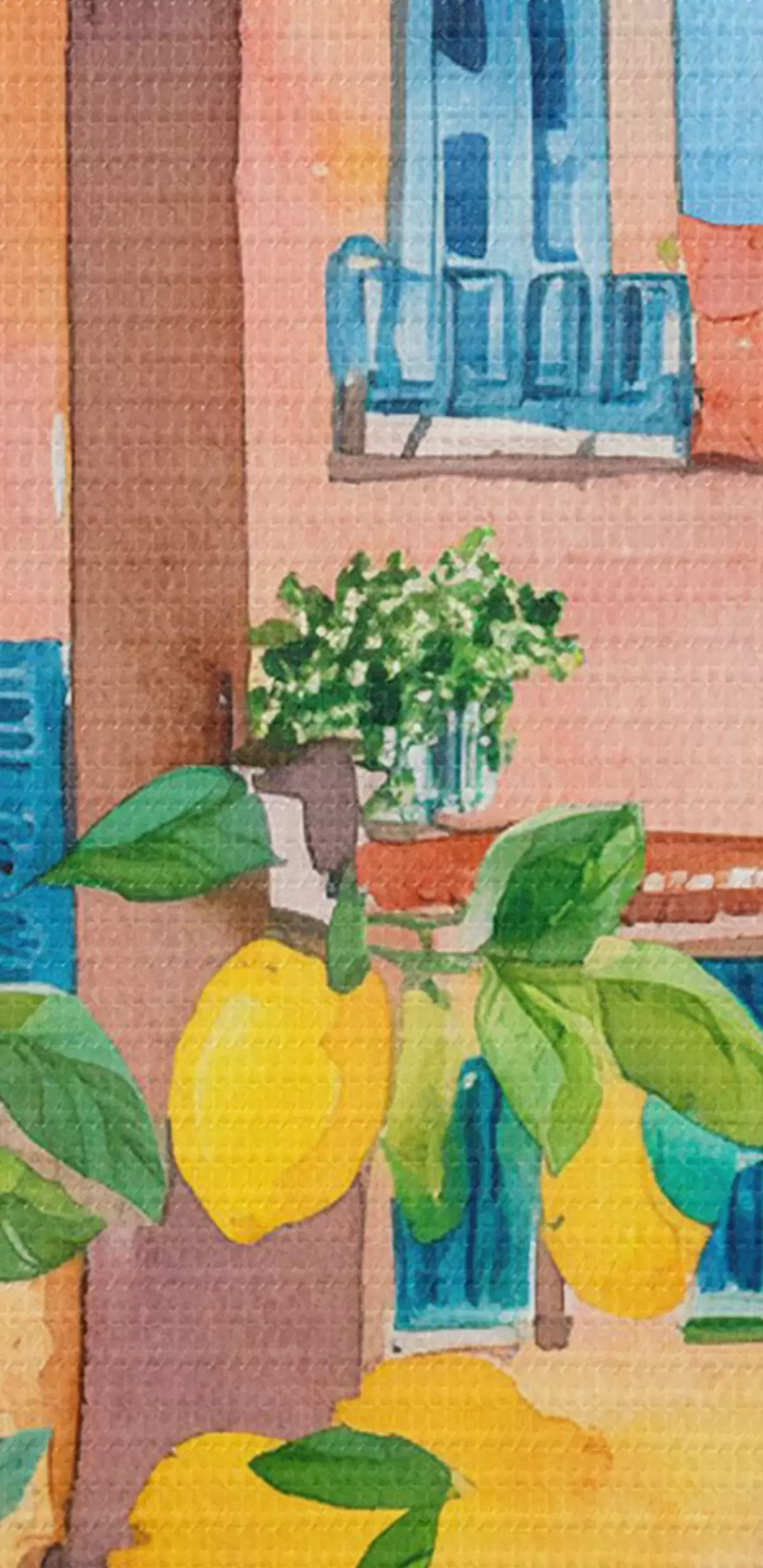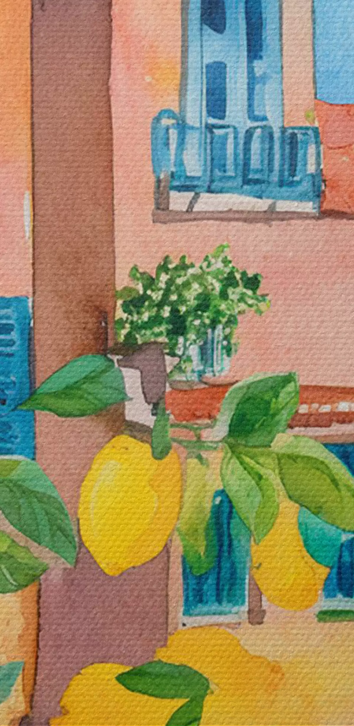 Wandbilder Italienische Stadtarchitektur, Meeresküste, Sommer, Aquarell, Zitronenbaum Art. s38395