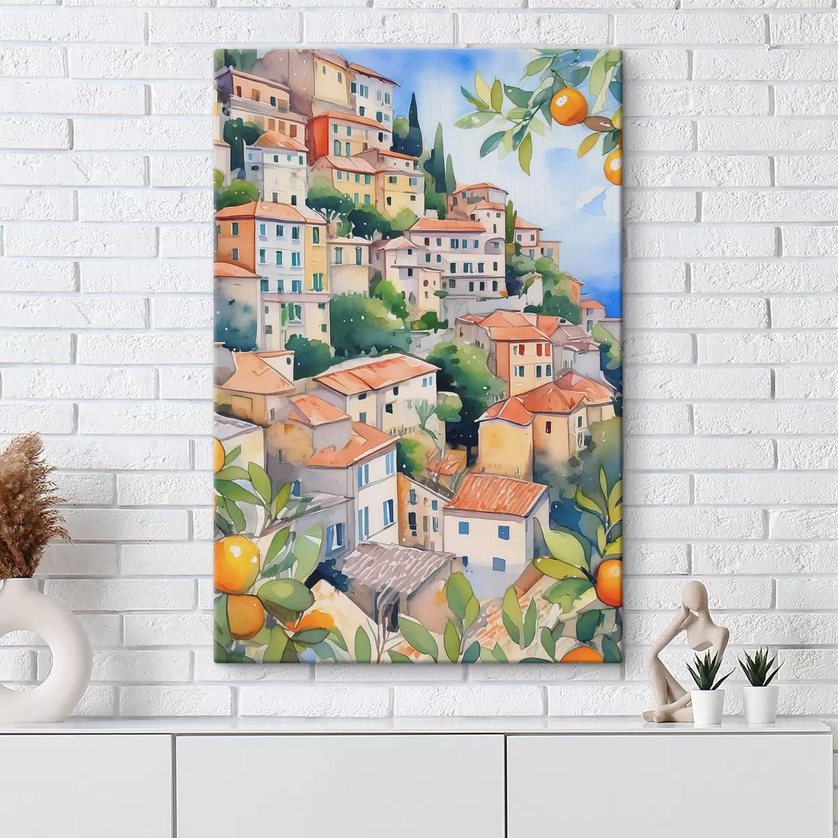 Wandbilder Mediterrane Architektur, Aquarell, Sommer, Orangen, Altstadt s38396