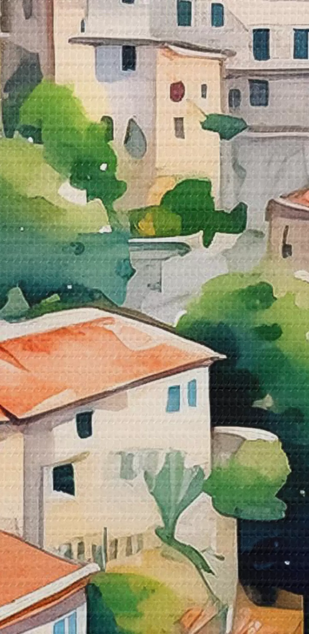 Drei Materialtypen stehen zur Verfügung: Economic Canvas - ein dichtes und haltbares Material für den Digitaldruck, identisch mit Malerleinwand, wasserfeste Oberfläche, realistische Wiedergabe von Details, mittelkörniges Material. Premium Canvas - die Textur ähnelt der einer Malerleinwand (verwobene kleine Fäden). Weiche, detaillierte Wiedergabe des Bildes auf einer matten Oberfläche. Eco-Premium - hochwertiges Gewebe aus 100% Baumwolle. Dank der natürlichen Baumwollfasern ist das Material langlebig und verschleißfest. Hervorragende Farbwiedergabe und Detailtreue.