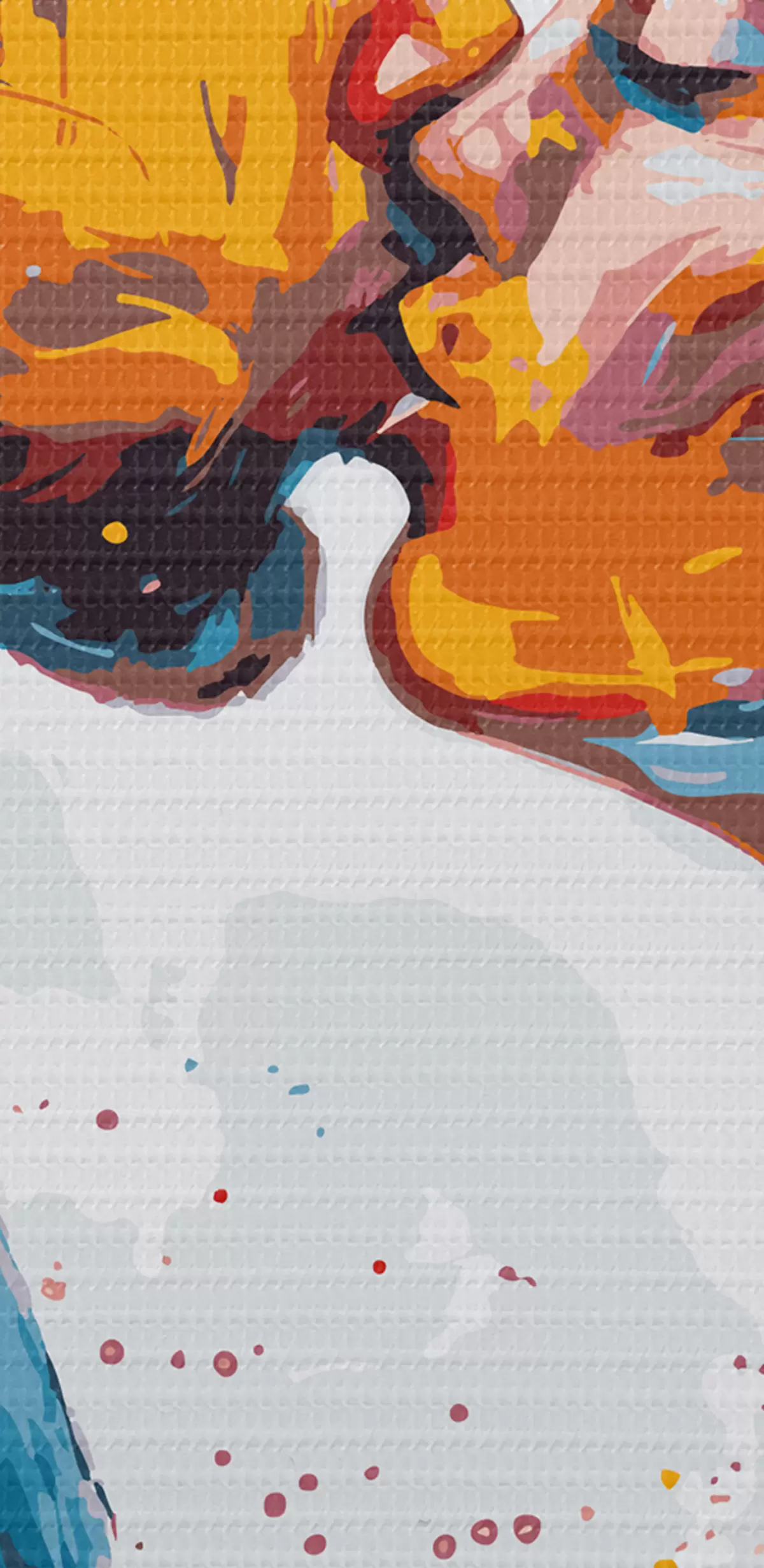 Drei Materialtypen stehen zur Verfügung: Economic Canvas - ein dichtes und haltbares Material für den Digitaldruck, identisch mit Malerleinwand, wasserfeste Oberfläche, realistische Wiedergabe von Details, mittelkörniges Material. Premium Canvas - die Textur ähnelt der einer Malerleinwand (verwobene kleine Fäden). Weiche, detaillierte Wiedergabe des Bildes auf einer matten Oberfläche. Eco-Premium - hochwertiges Gewebe aus 100% Baumwolle. Dank der natürlichen Baumwollfasern ist das Material langlebig und verschleißfest. Hervorragende Farbwiedergabe und Detailtreue.