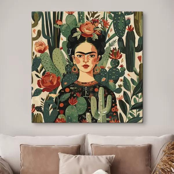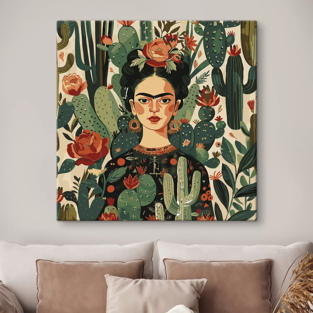 Wandbilder Frida im grünen Stil mit Kakteen s38415