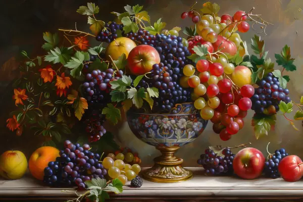 Wandbilder Ein Gemälde mit Obst in einer Vase Art. s38468