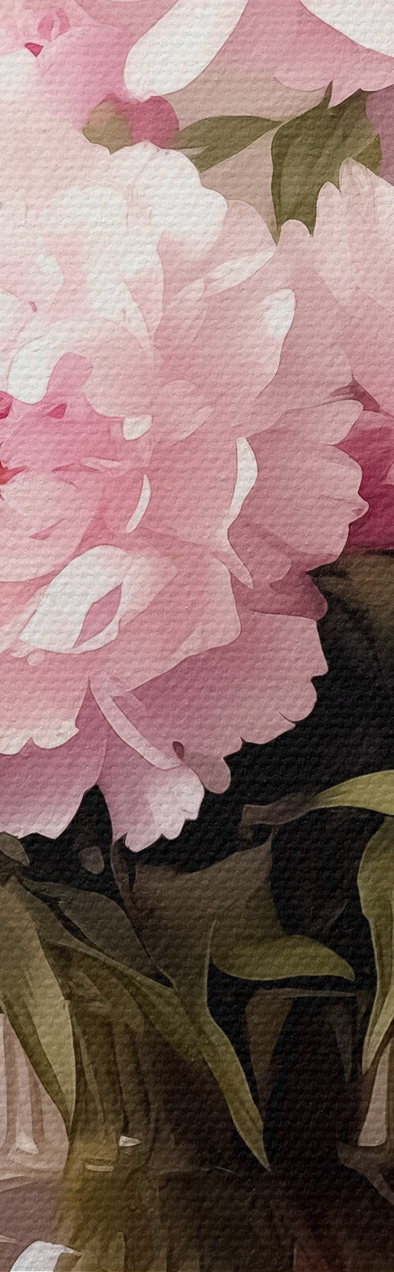 Wandbilder Rosa Pfingstrosen in einer Glasvase auf schwarzem Hintergrund, Imitation eines Ölgemäldes, Blumen Art. s38482